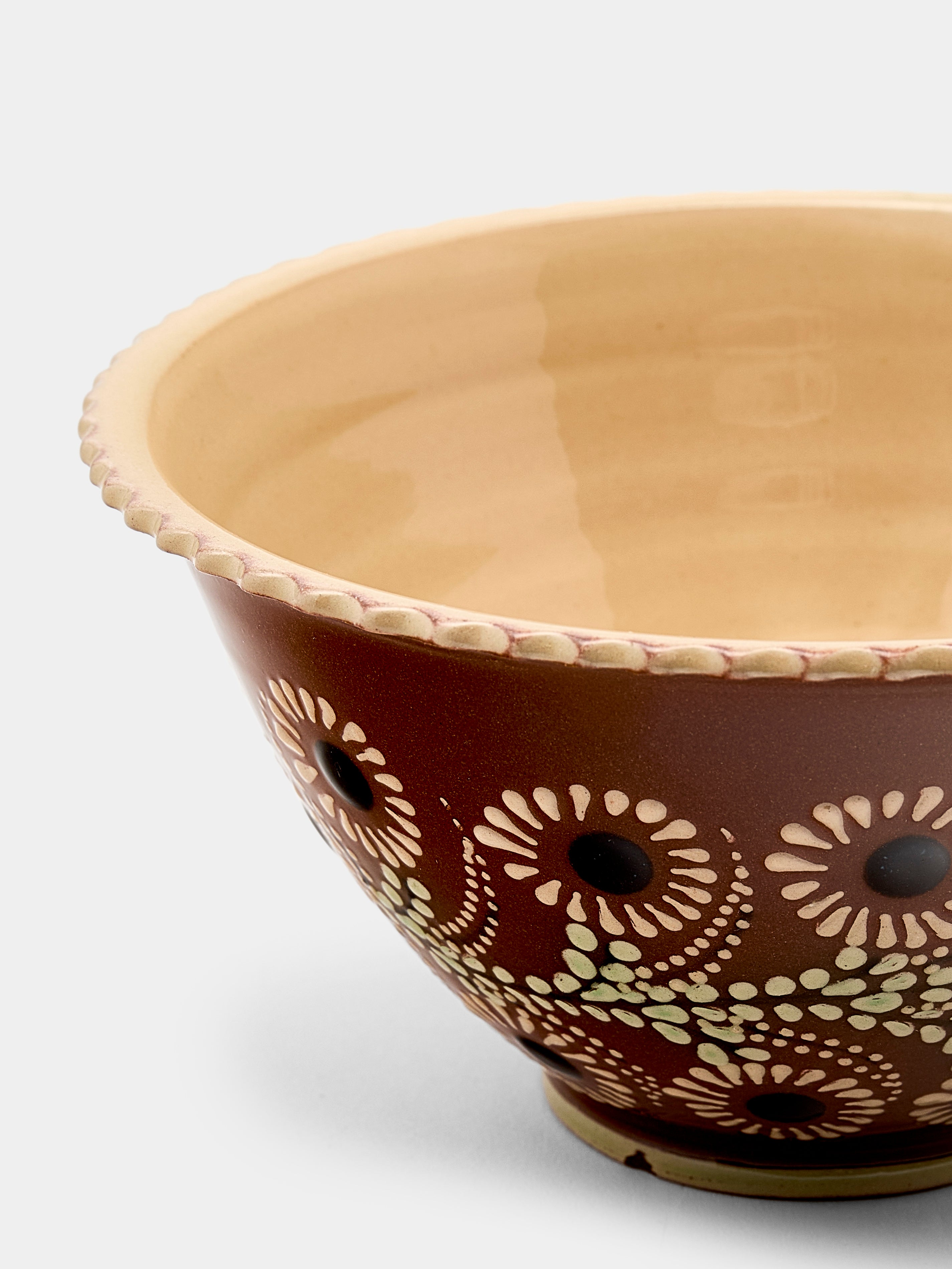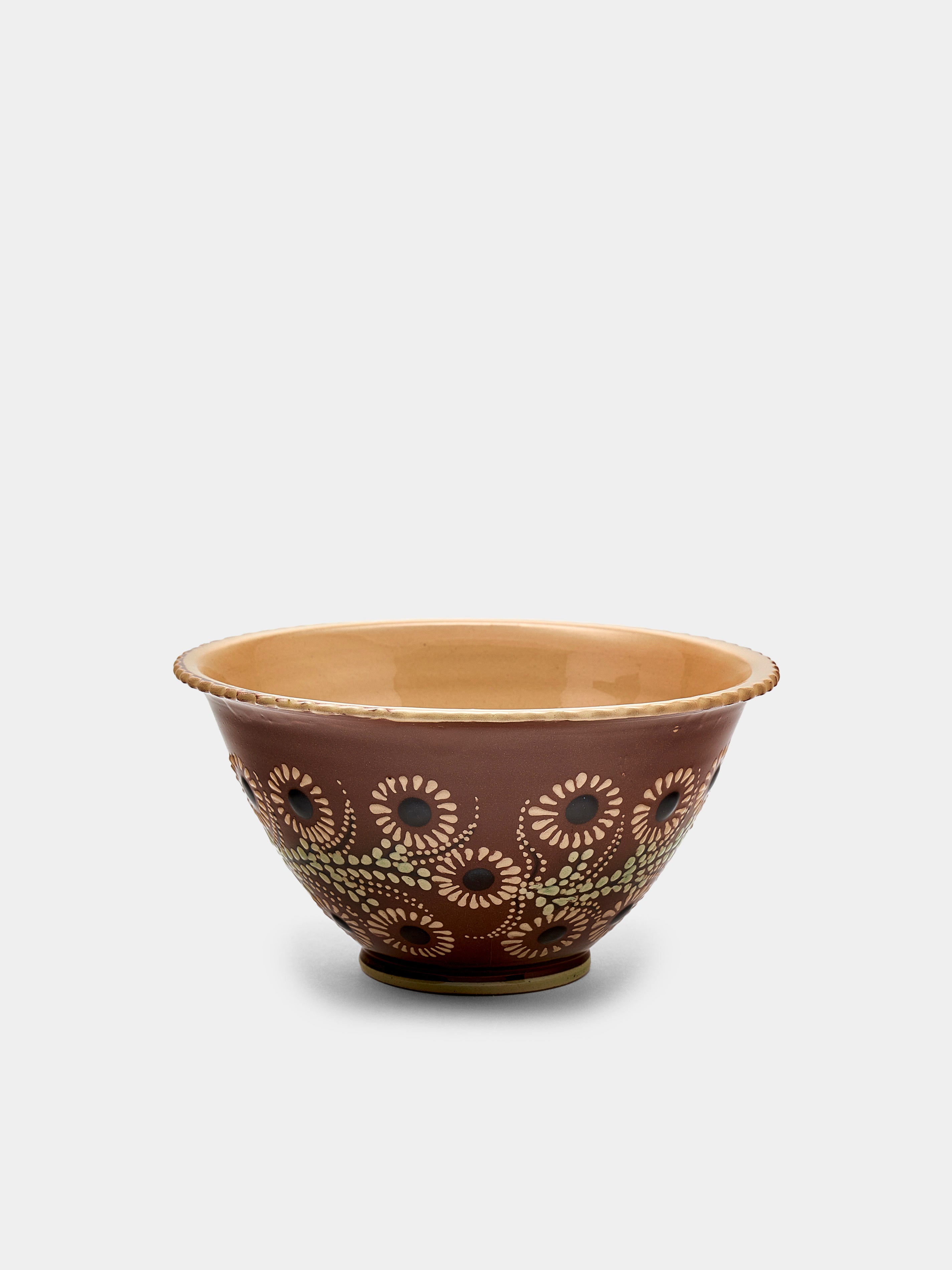Jean-Christophe Hermann grew up near Lake Annecy in France, and recalls visiting an old pottery at just five years old that inspired him to pursue ceramics – a moment that led to the opening of Poterie d’Évires in 1971. Influenced by the landscape of their Haute-Savoie home, the Hermann family – Jean-Christophe and David, the father and son duo – hand-paint local delights onto their light, earthy and decorative clay; alpine flowers like tiny crocuses and soldanellas often feature, as well as native creatures such as Chamois and Ibex. ABASK made a special road-trip to the French Alps to hand-pick a curation from their exquisite collection. In 1981, after exploring his region’s brocante for many years, Jean-Christophe opened a museum dedicated to the pottery and folk art of Savoie. It’s the largest and most comprehensive collection in the world and displays pieces that date as far back as the 12th century.