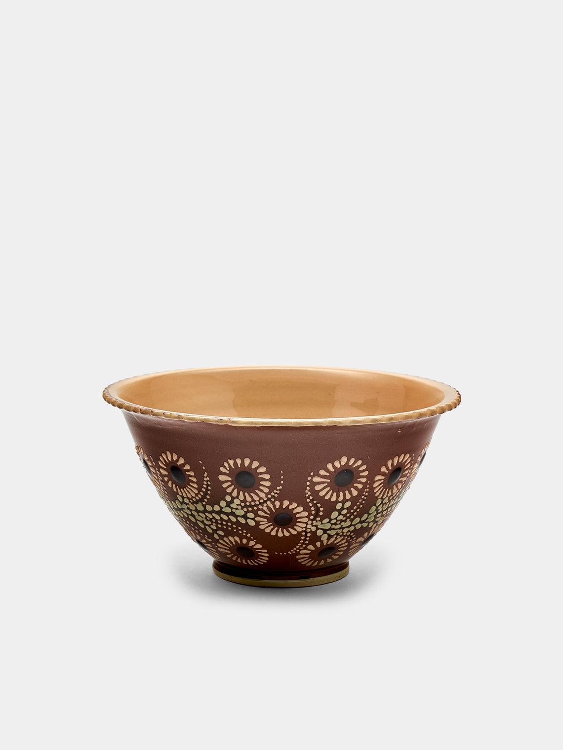 Poterie d’Évires Flowers Hand-Painted Ceramic Small Fluted Serving Bowl