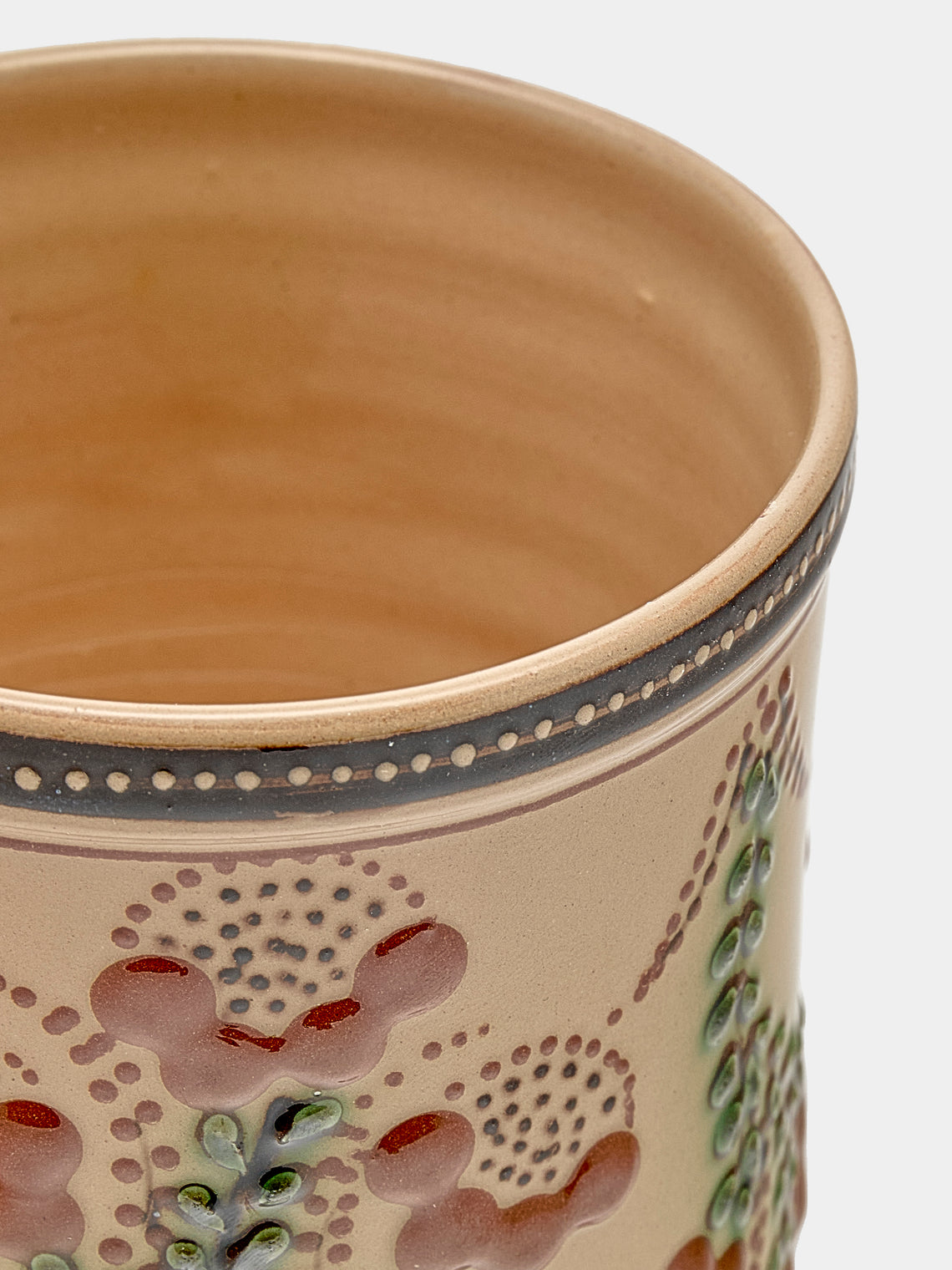 Jean-Christophe Hermann grew up near Lake Annecy in France, and recalls visiting an old pottery at just five years old that inspired him to pursue ceramics – a moment that led to the opening of Poterie d’Évires in 1971. Influenced by the landscape of their Haute-Savoie home, the Hermann family – Jean-Christophe and David, the father and son duo – hand-paint local delights onto their light, earthy and decorative clay; alpine flowers like tiny crocuses and soldanellas often feature, as well as native creatures such as Chamois and Ibex. ABASK made a special road-trip to the French Alps to hand-pick a curation from their exquisite collection. In 1981, after exploring his region’s brocante for many years, Jean-Christophe opened a museum dedicated to the pottery and folk art of Savoie. It’s the largest and most comprehensive collection in the world and displays pieces that date as far back as the 12th century.