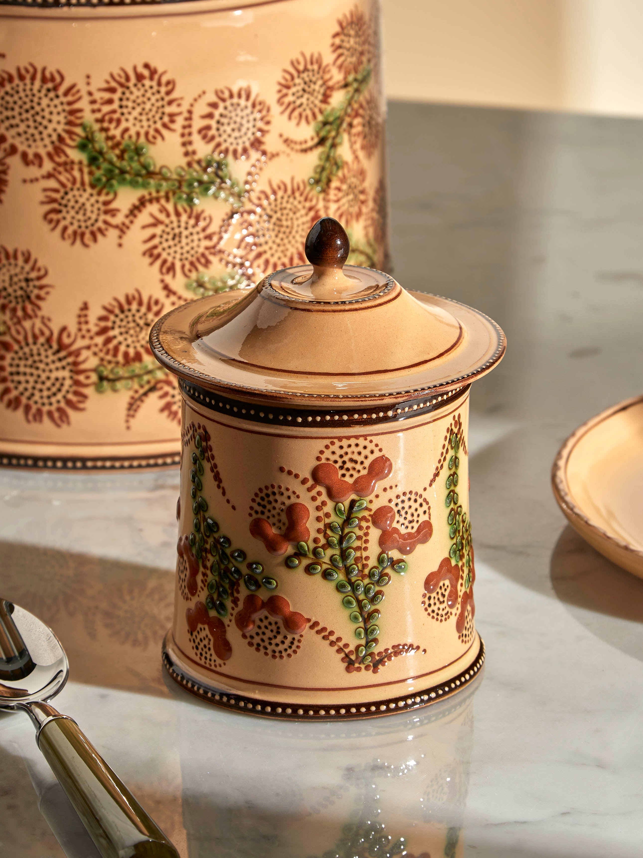 Poterie d’Évires Flowers Hand-Painted Ceramic Small Lidded Jar