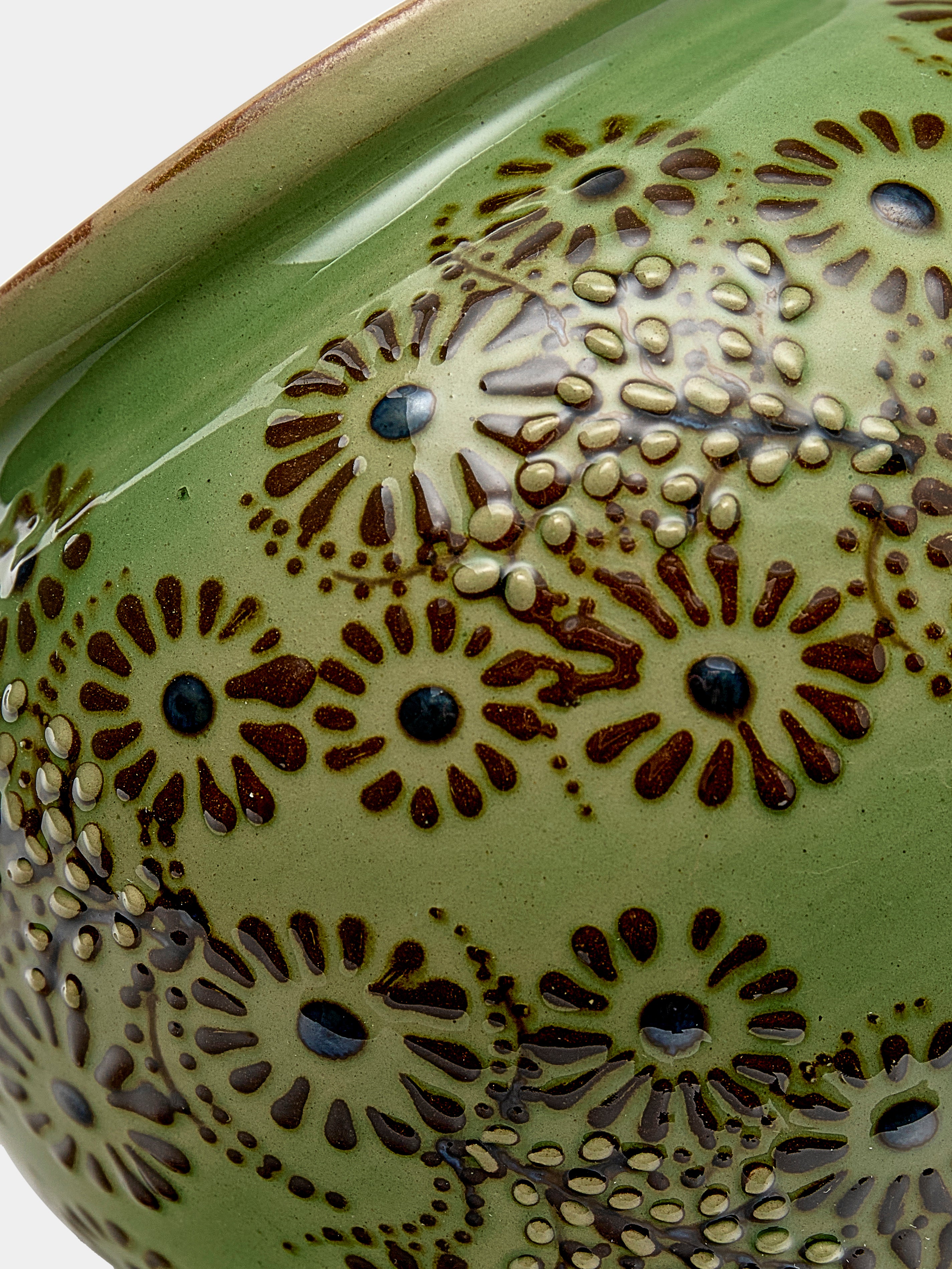 Jean-Christophe Hermann grew up near Lake Annecy in France, and recalls visiting an old pottery at just five years old that inspired him to pursue ceramics – a moment that led to the opening of Poterie d’Évires in 1971. Influenced by the landscape of their Haute-Savoie home, the Hermann family – Jean-Christophe and David, the father and son duo – hand-paint local delights onto their light, earthy and decorative clay; alpine flowers like tiny crocuses and soldanellas often feature, as well as native creatures such as Chamois and Ibex. ABASK made a special road-trip to the French Alps to hand-pick a curation from their exquisite collection. In 1981, after exploring his region’s brocante for many years, Jean-Christophe opened a museum dedicated to the pottery and folk art of Savoie. It’s the largest and most comprehensive collection in the world and displays pieces that date as far back as the 12th century.