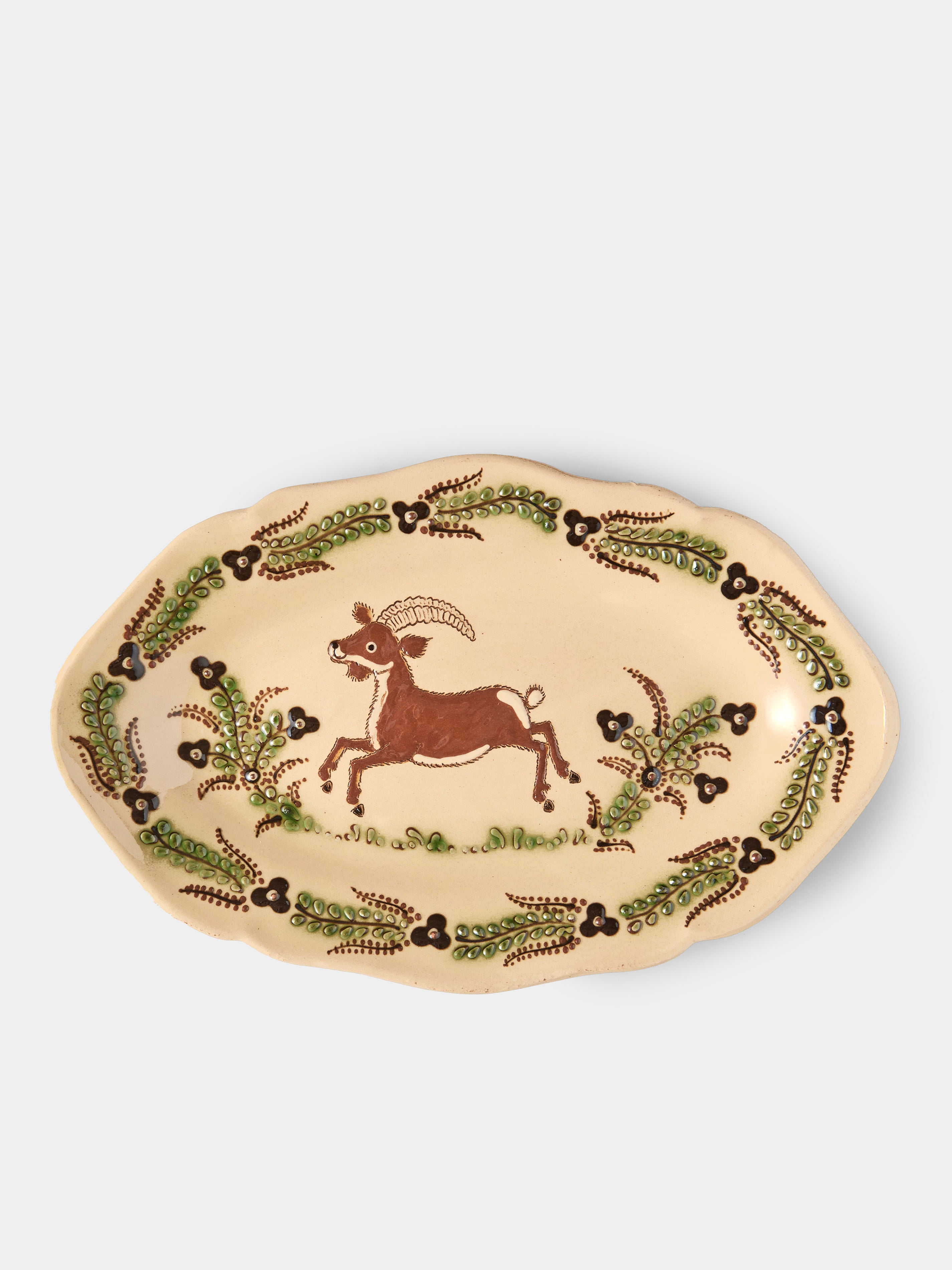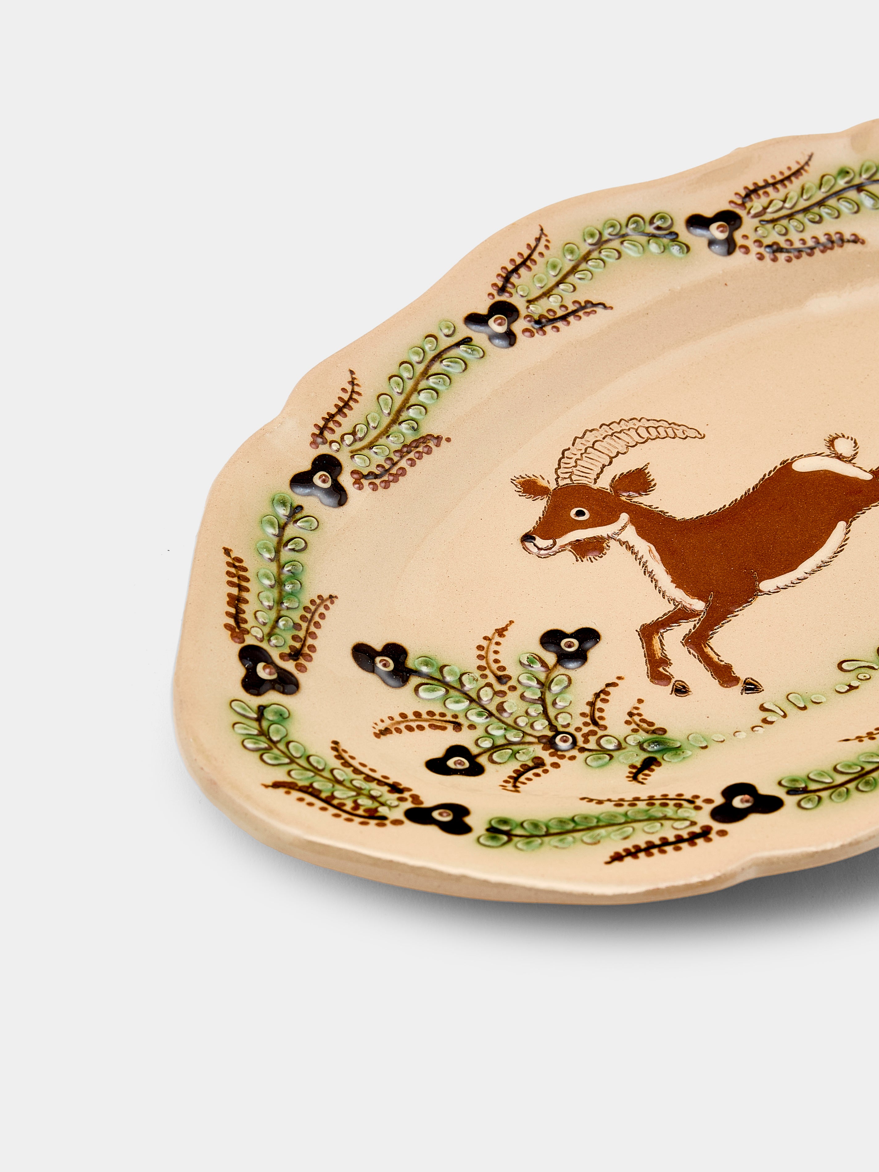 Poterie d’Évires Goats Hand-Painted Ceramic Fluted-Edge Platter