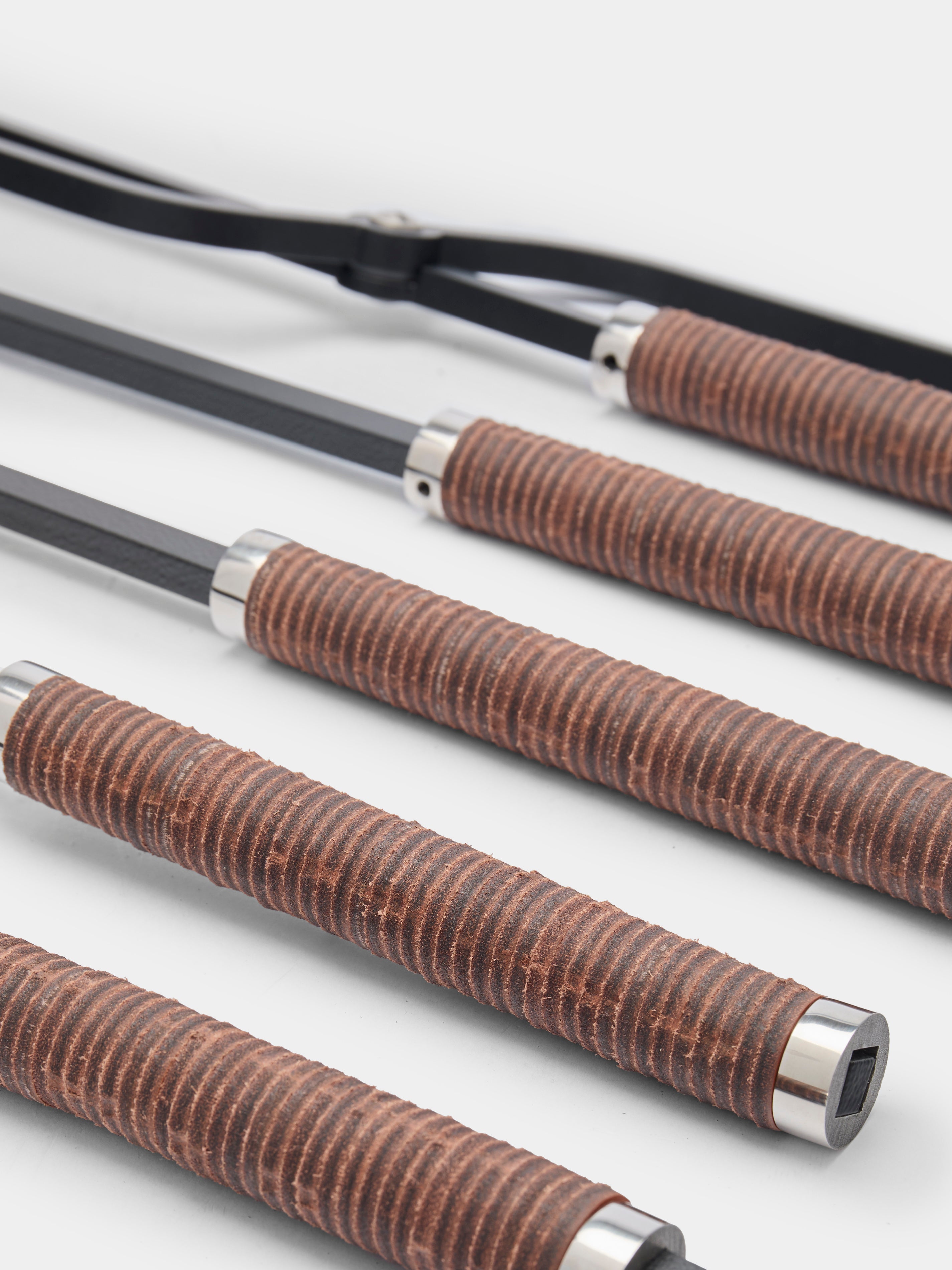 Milan-born leather specialist, Rabitti launched in 1969 and is widely recognised for its thick vegetable-tanned saddle leather. Because of its sturdy sensibilities, saddle leather requires zero reinforcement, enabling homeware objects such as baskets and trays to be entirely crafted from leather. Its characteristic look and softness are achieved by using chrome-free natural tannins in the dying process.