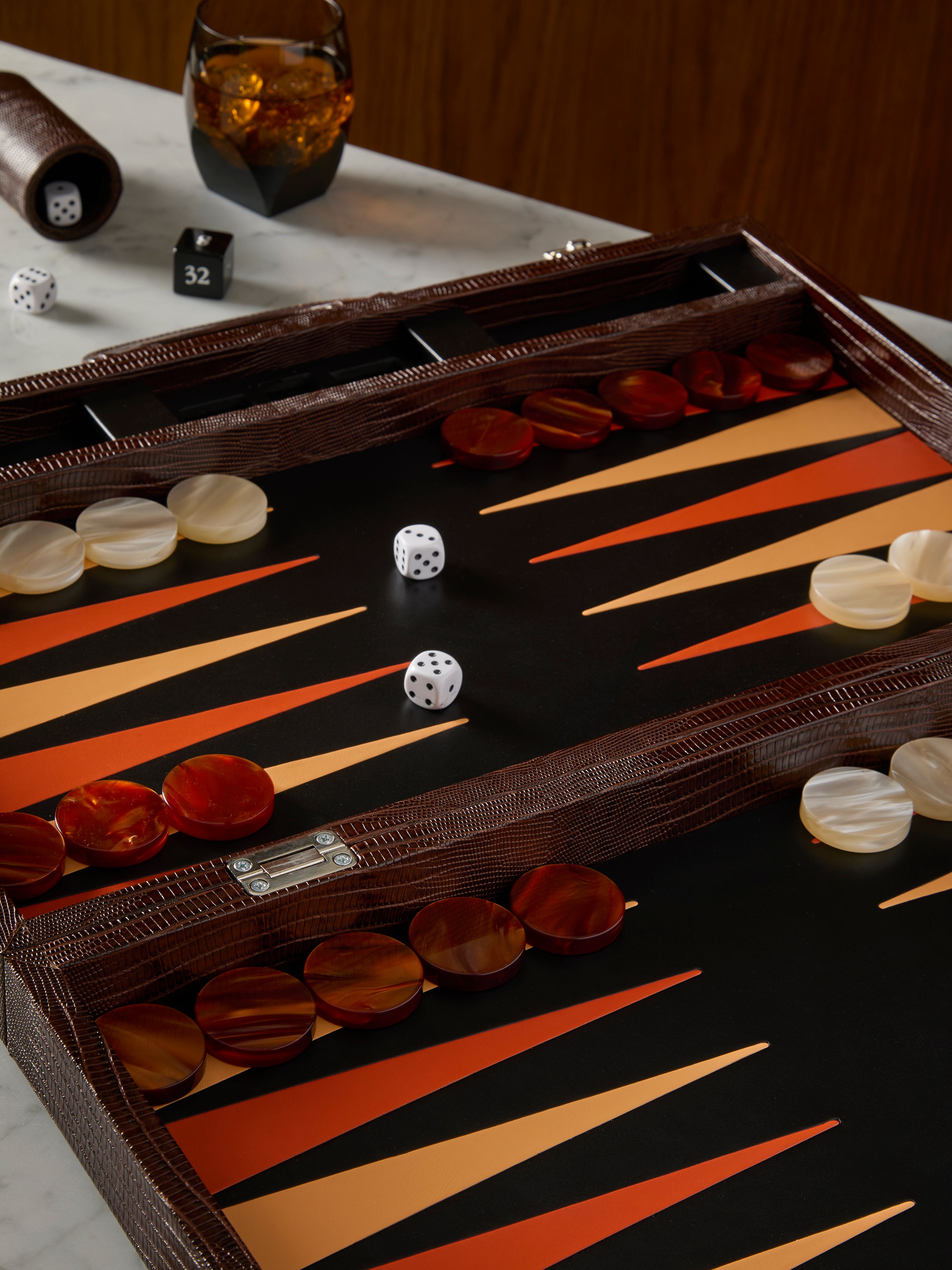 Renzo Romagnoli Leather Large Backgammon Set with Handles