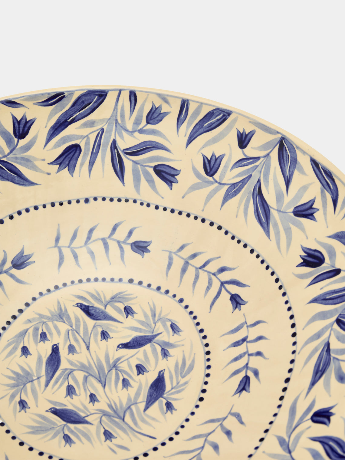 Birds and Bluebells Hand-Painted Ceramic Fruit Bowl10cm (h) x 42cm (d) / 3.9" (h) x 16.4" (d)