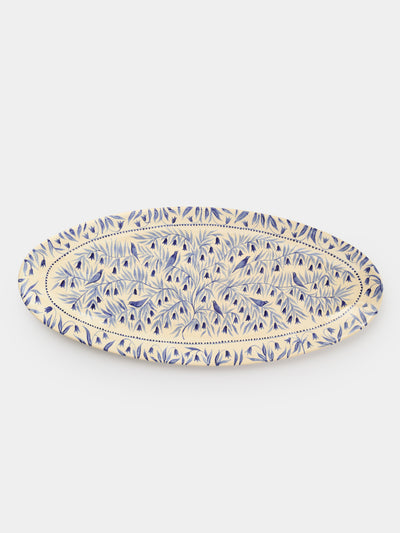Birds and Bluebells Hand-Painted Ceramic Oval Platter4.5cm (h) x 40.5cm (w) x 30cm (l) / 1.8" (h) x 15.8" (w) x 11.7" (l)