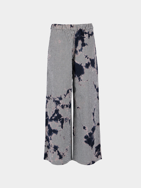 Suzusan Madara Shibori Cotton Gingham Wide Trousers | Size: M
