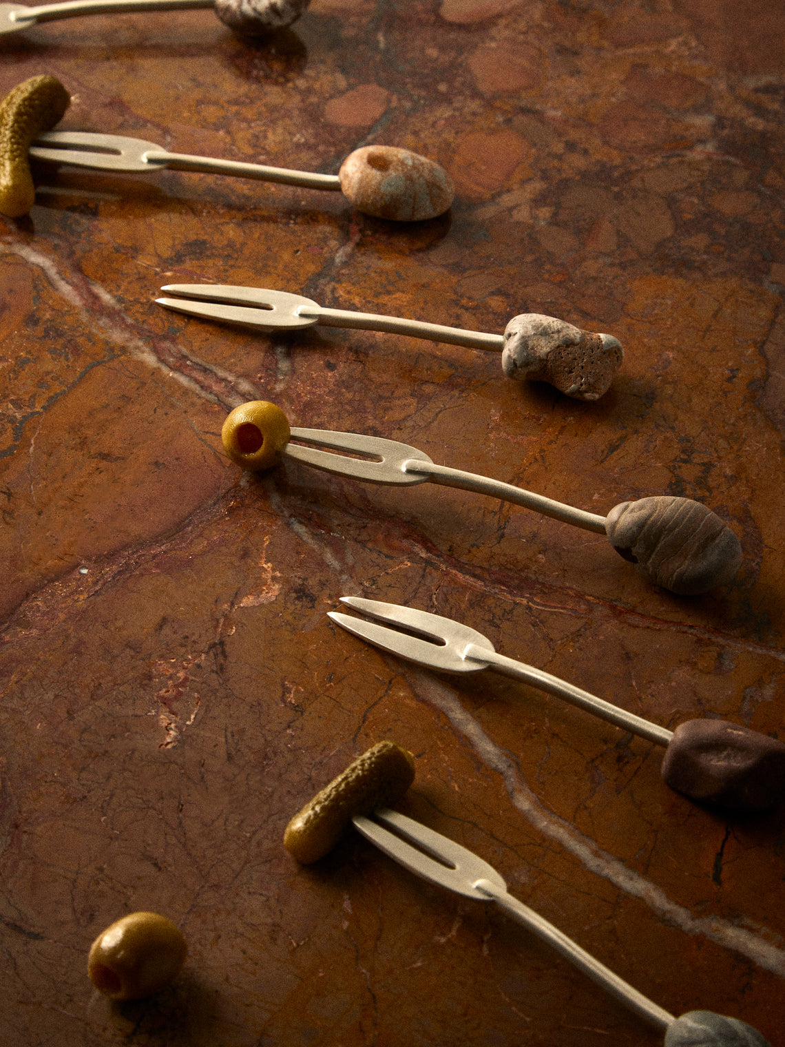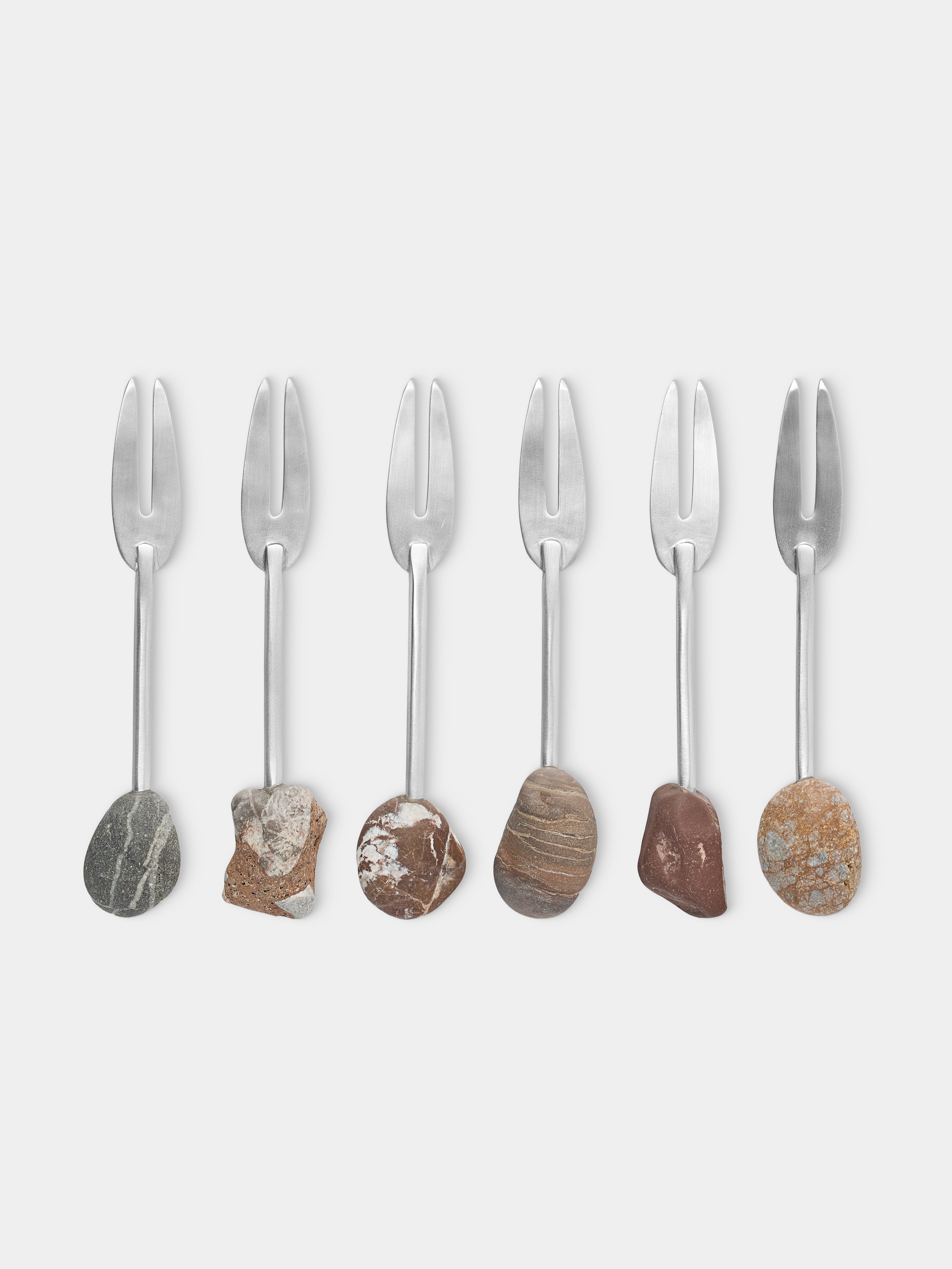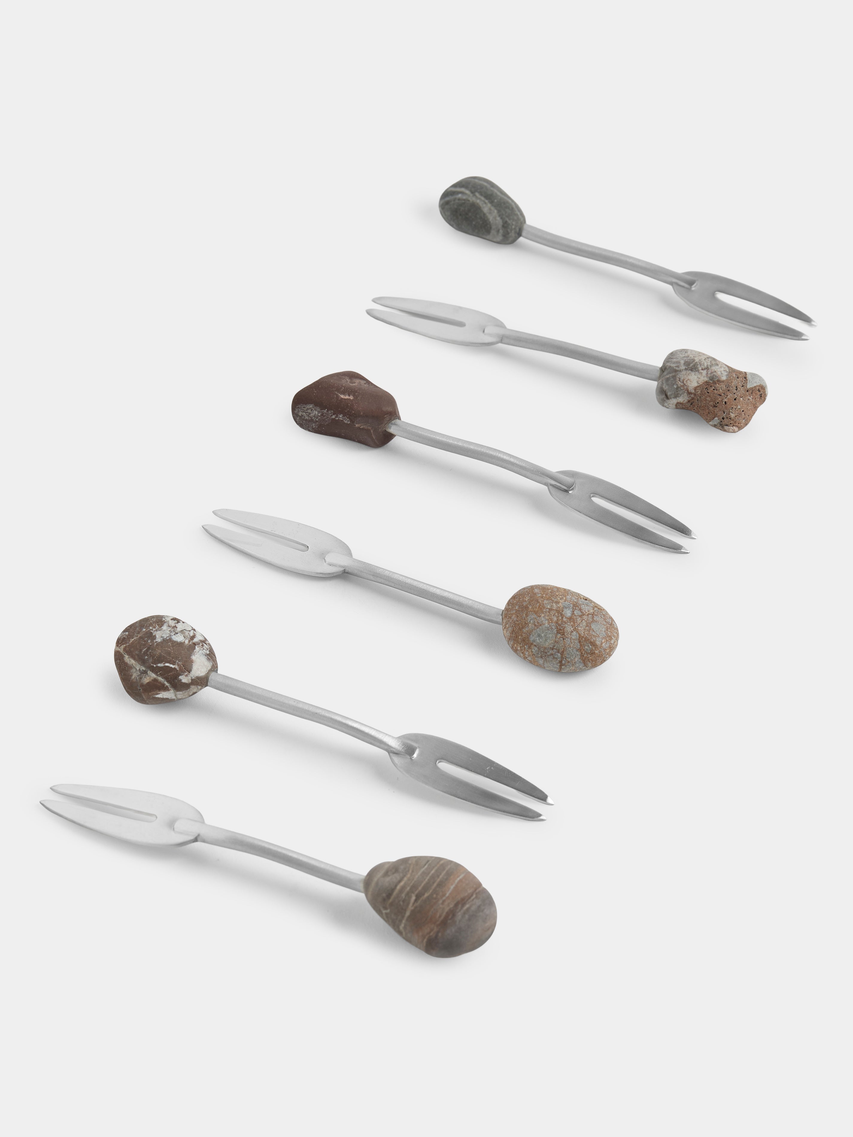 Thalia Maria Silver Sterling Silver and Pebble Cocktail Forks (Set of 6)