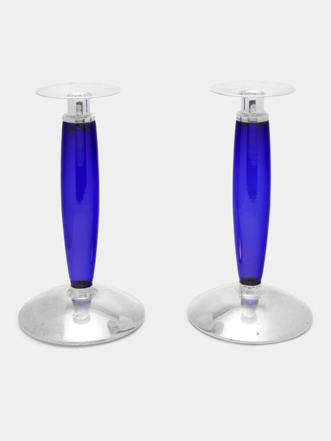 Antique and Vintage 1970s Solid Silver and Glass Candle Holders (Set of 2)