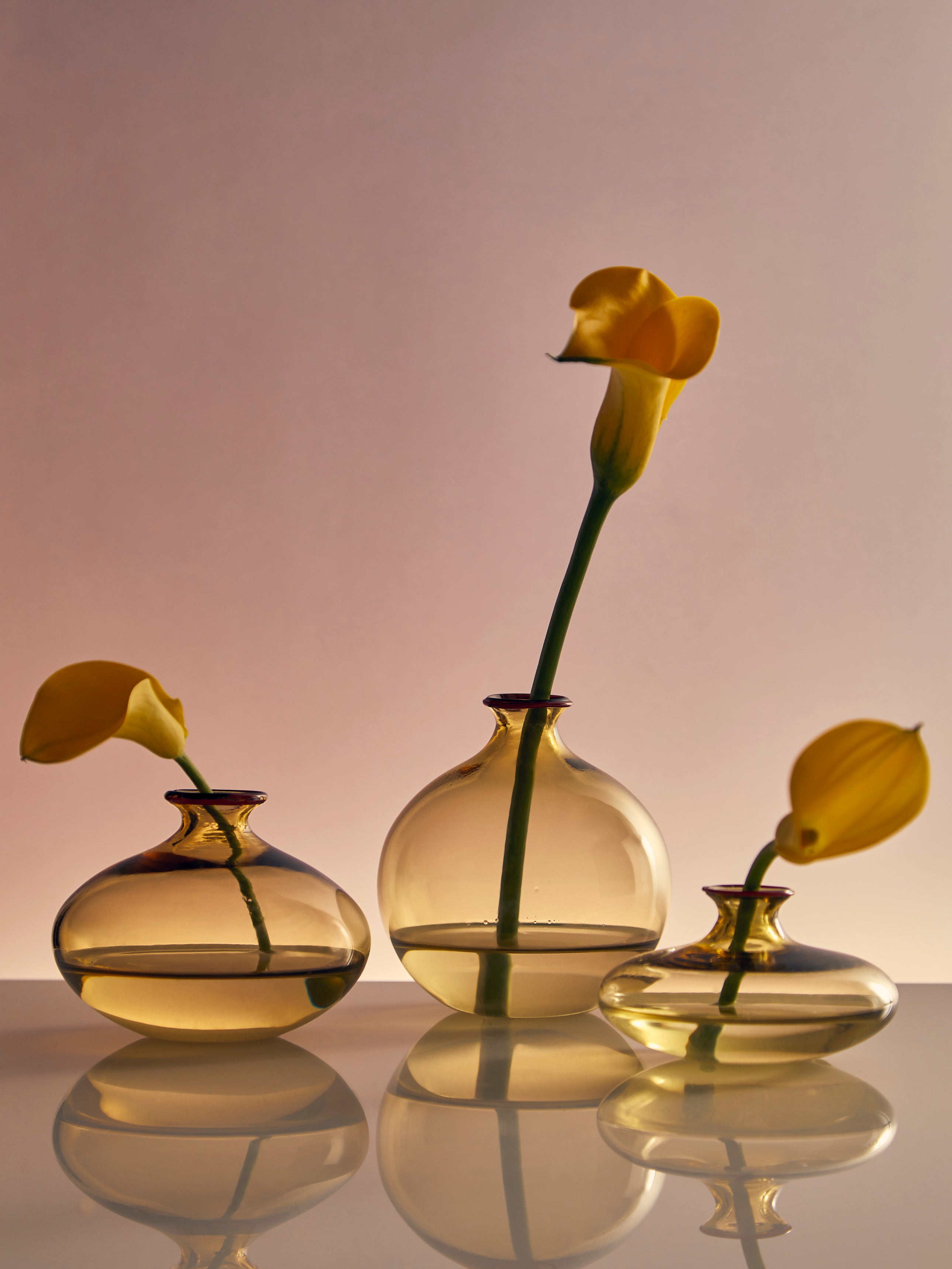 - Set includes: Big bud vase 11cm (h) x 10cm (w); Medium bud vase 8cm (h) x 10cm (w); Small bud vase 5.5cm (h) x 10cm (w)