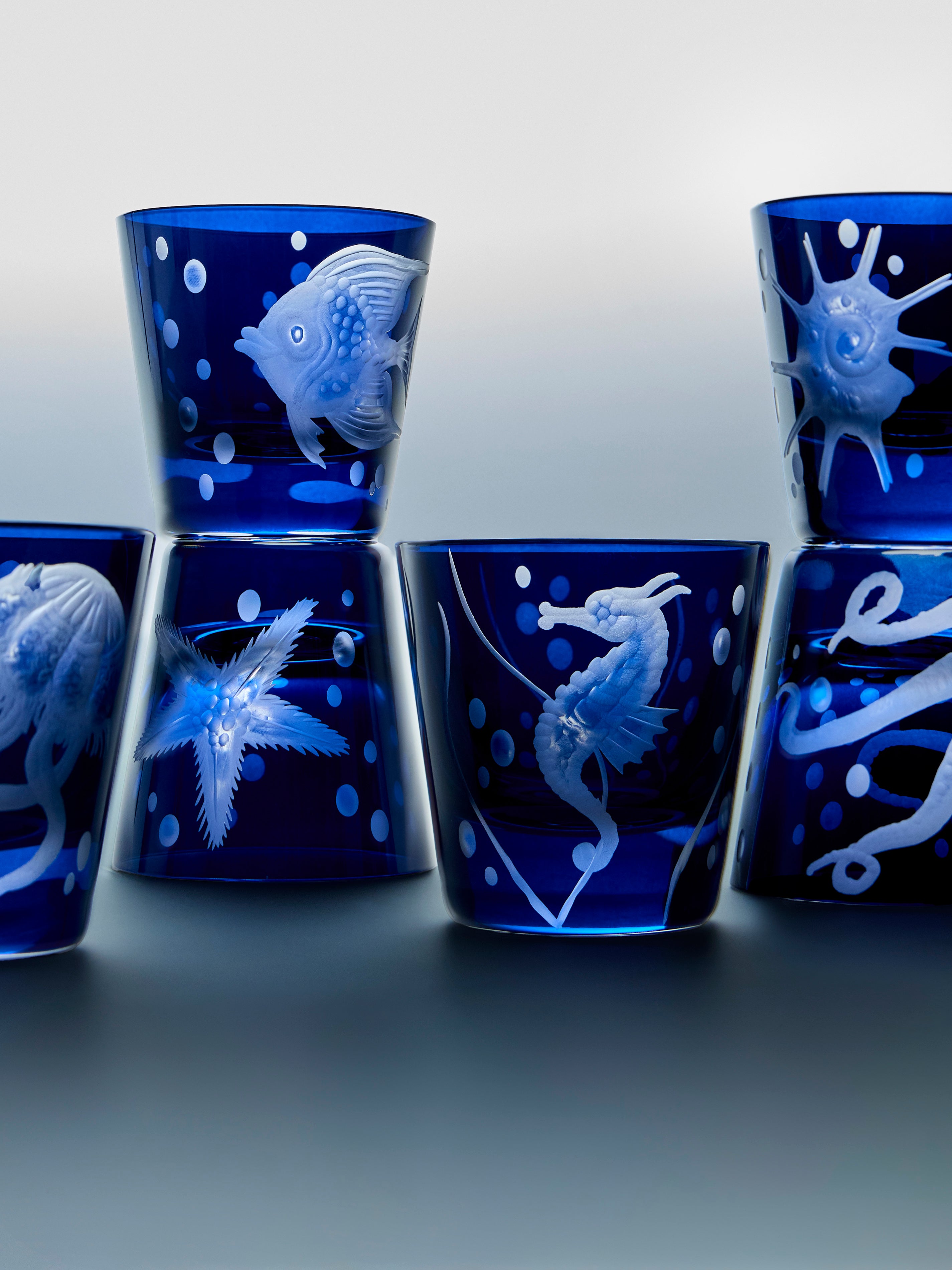 Sea Life Hand-Engraved Crystal Tumblers – 13.5oz/400ml (Set of 6)12.5cm (h) x 8.5cm (d) / 4.9" (h) x 3.3" (d)