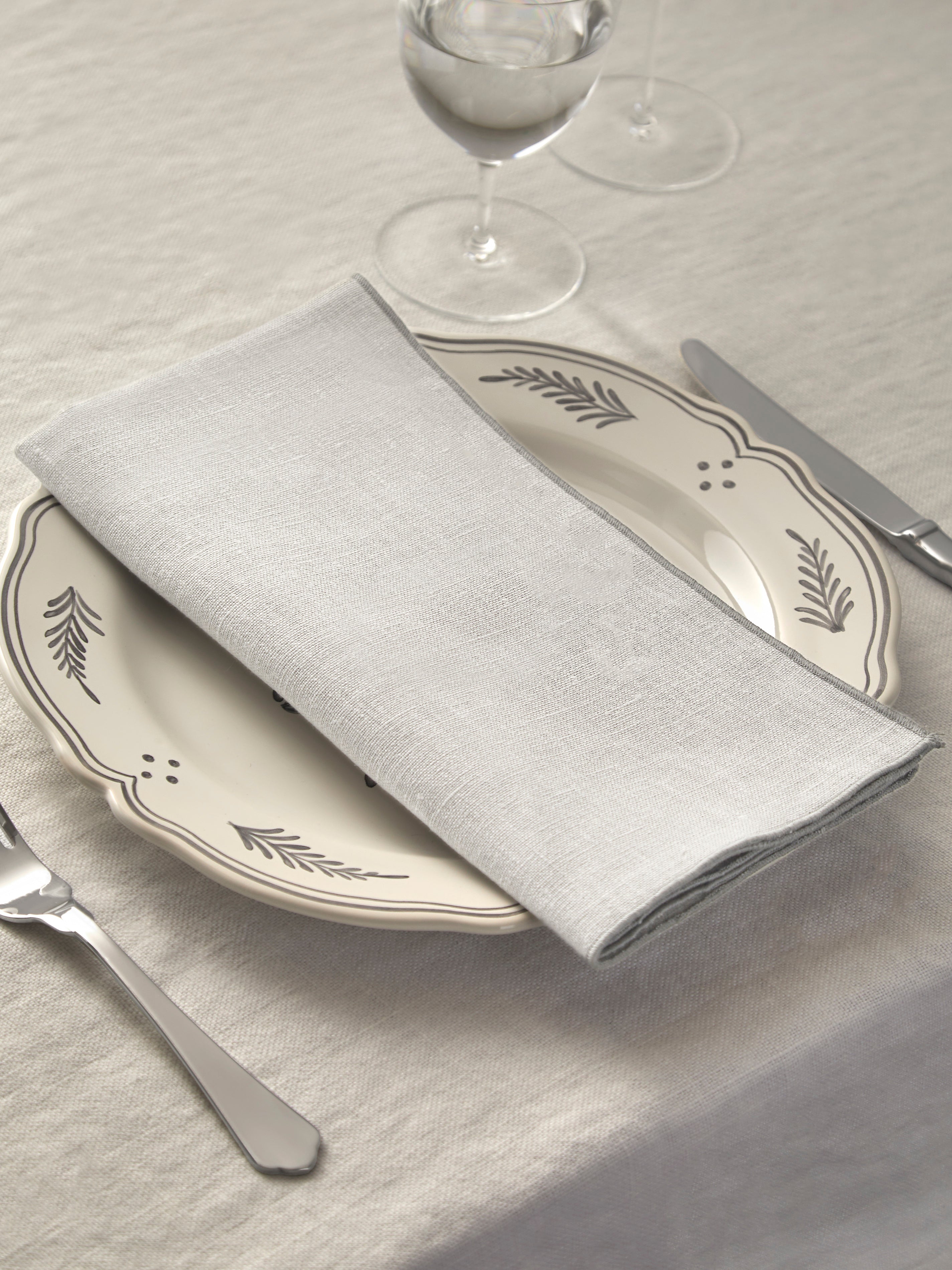 Sitting at the crossroads of tradition and innovation, Borgo delle Tovaglie’s fine table linens represent the unhurried yet considered pace of life under the Italian sun. Each piece is made to order, handcrafted in the label’s Bologna workshop, and new collections follow the seasons, with designs driven by the customer’s needs and desires. Valentina Muggia took over Borgo delle Tovaglie from her mother and runs it alongside husband Giuliano Di Paolo. Her vision for the new era is one of eclecticism – creative table dressings forla dolce vita, from rustic, al-fresco lunches to dazzling cocktail soirées. And at the centre of it all lies the foundational piece: the stain-resistant linen tablecloth.