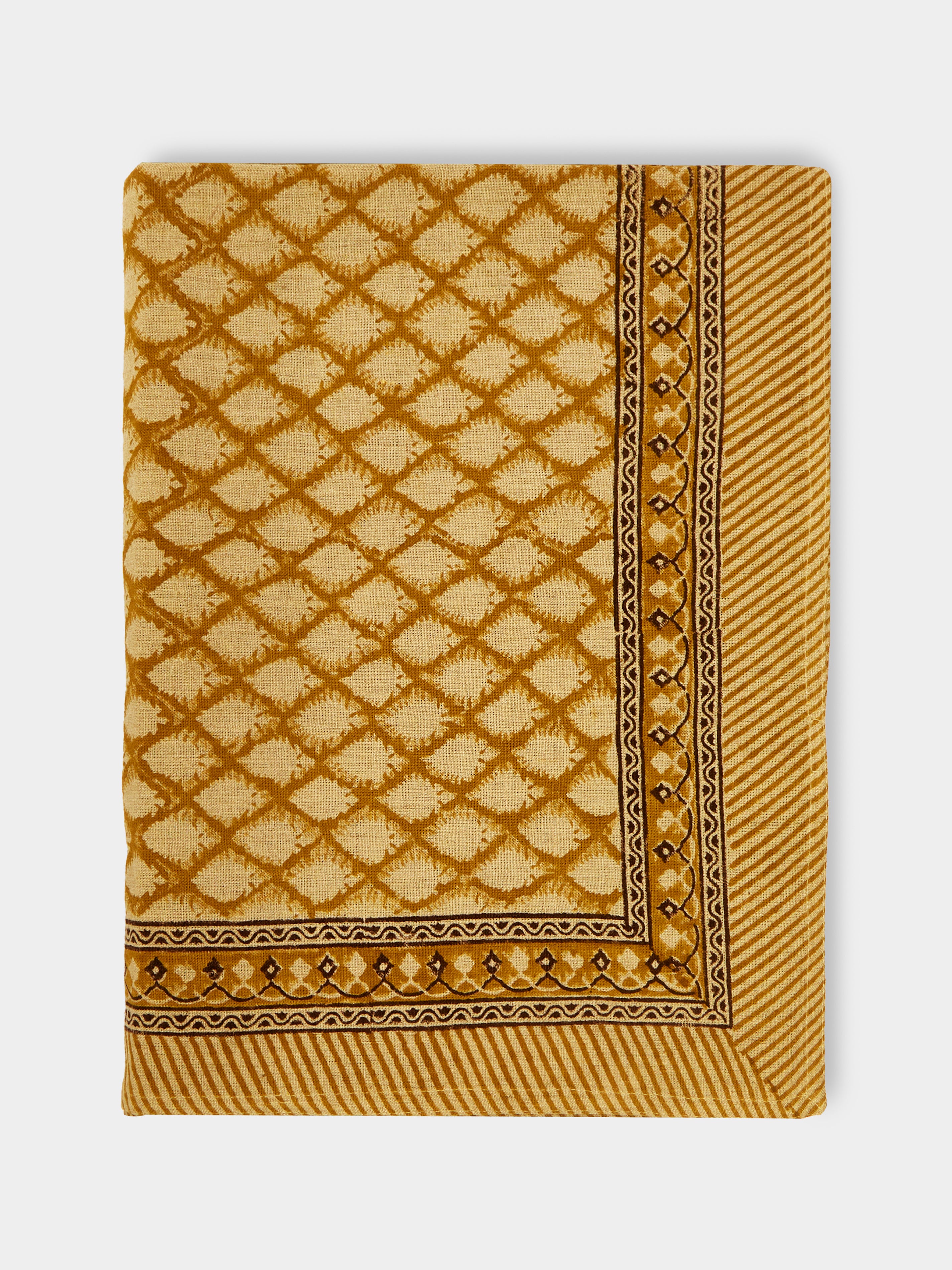 Cypress Block-Printed Linen Rectangular Tablecloth (106.5in/2.7m)170cm (l) x 270cm (w) / 66.4" (l) x 105.5" (w)