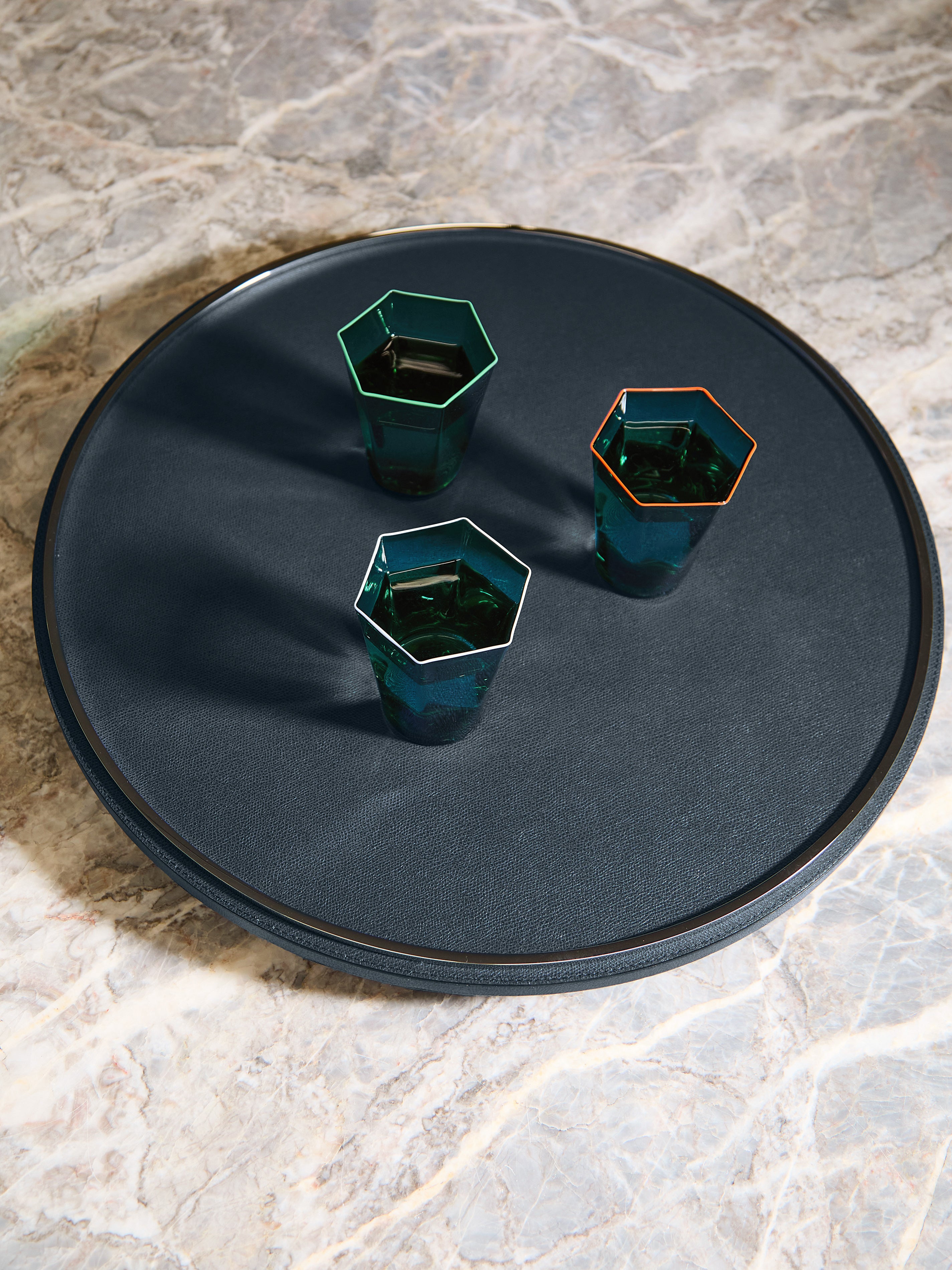 Giorgio Bagnara’s collection of handcrafted leather homeware nods to his Genoese family’s leather-making traditions from 1939. The founder of leather houses, Rabitti 1969 and Riviere, employs both hand-stitching and modern technologies to achieve artisanal excellence and great precision. From shagreen to natural calfskin leather, Giobagnara has over 200 dyed leathers, plus an inimitable collection of maple, oak and walnut wood.