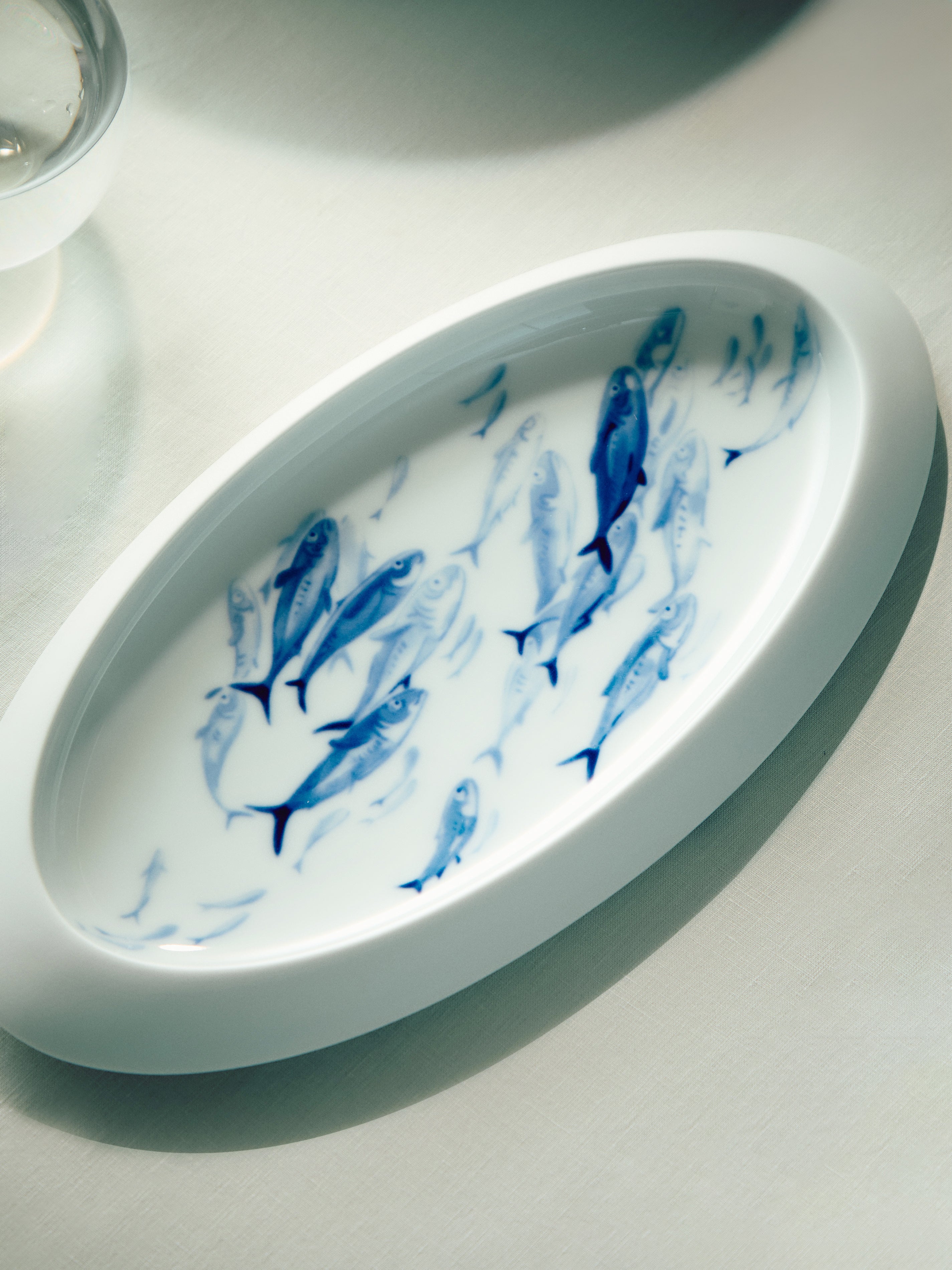 Ocean Porcelain Oval Platter2.4cm (h) x 33.5cm (w) x 33.5cm (l) / 0.9" (h) x 13.1" (w) x 13.1" (l)