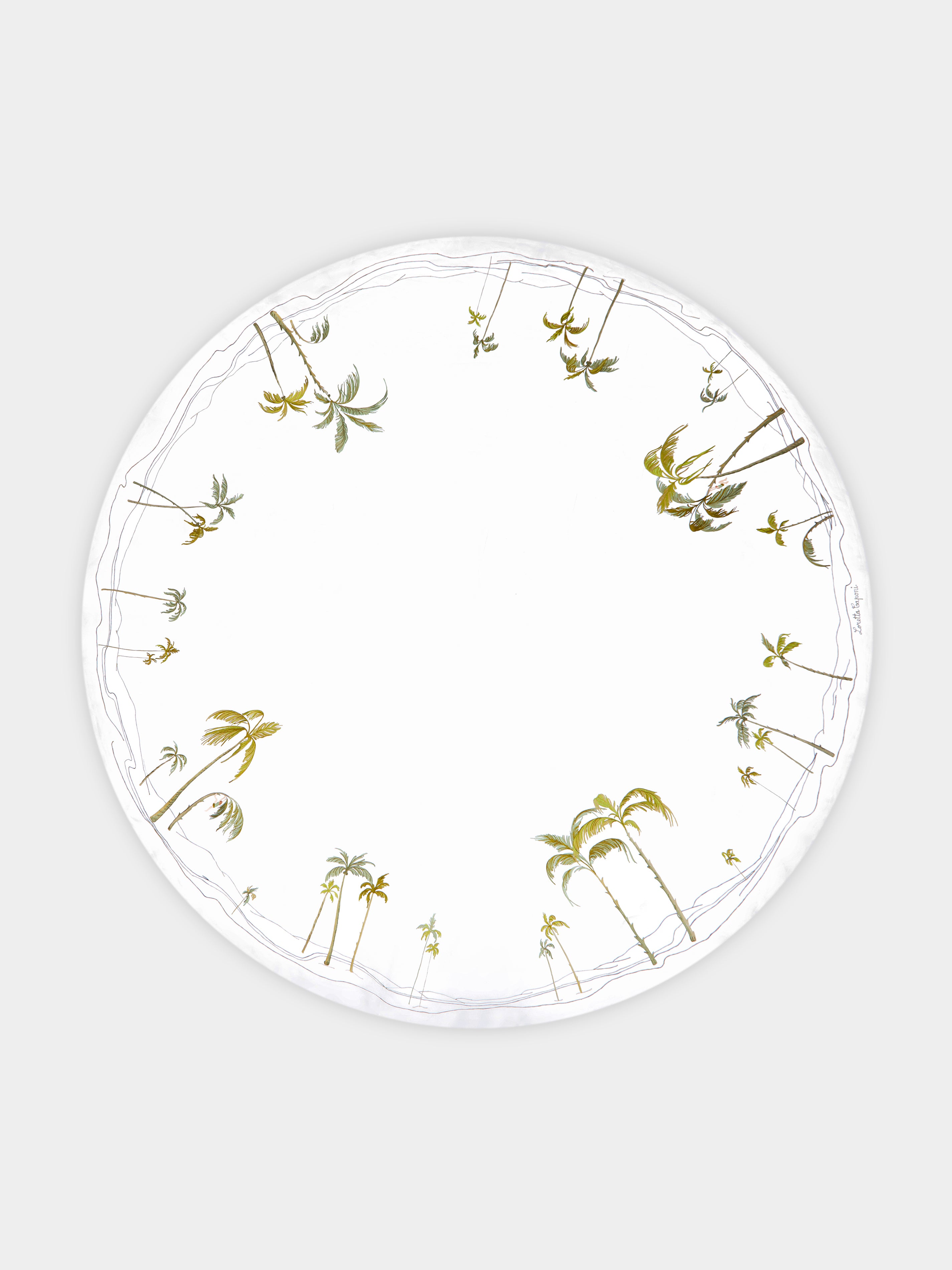 Loretta Caponi Palm Tree Hand-Embroidered Linen Round Tablecloth (118in/3m)