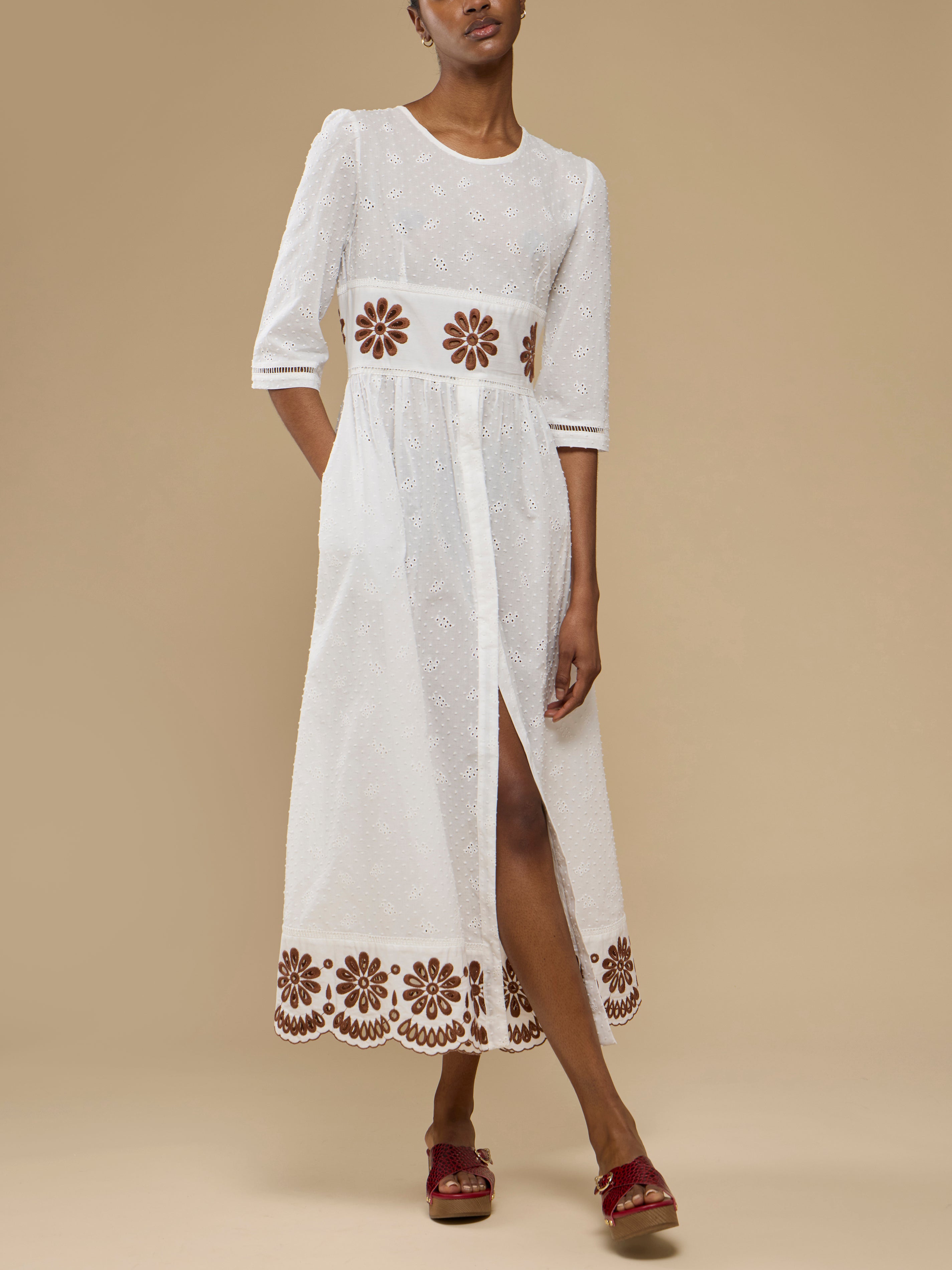 Loretta Caponi Uva Embroidered Cotton Long Dress