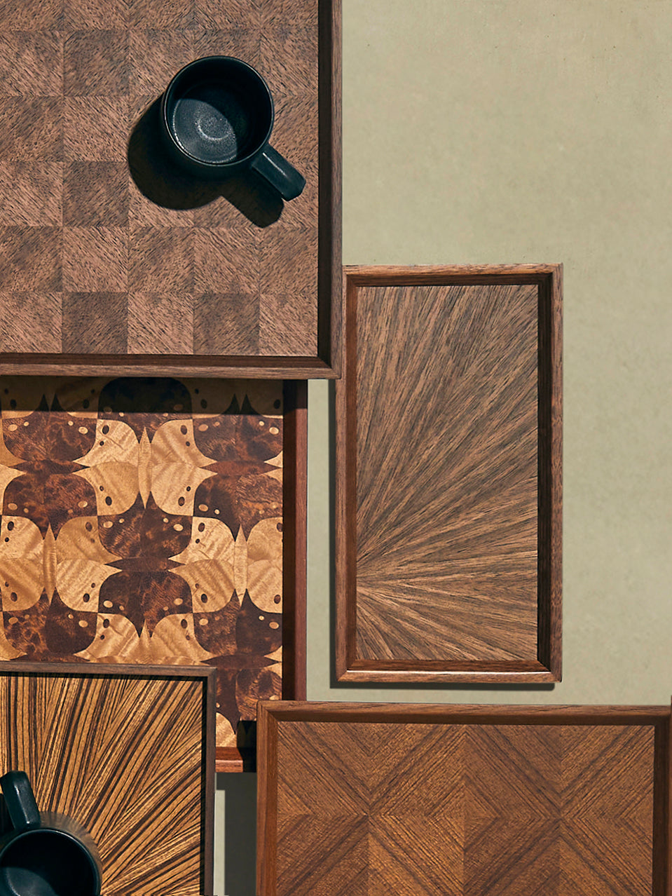 Since 1953, Tokushima-based Mori Kougei has been specialising in tsuki-ita, a highly complex technique in which paper-thin sheets of wood are sliced with sharp blades before being bonded together to form intricate surface patterns. This meticulous process has been refined and passed through the generations for more than 70 years. The result is a selection of functional trays highlighting the grain, colour and character of different wood species. Expect meticulously indigo-dyed pieces – a treasured Tokushima art – and subtle, contemporary scenes inspired by art, geometry and nature.