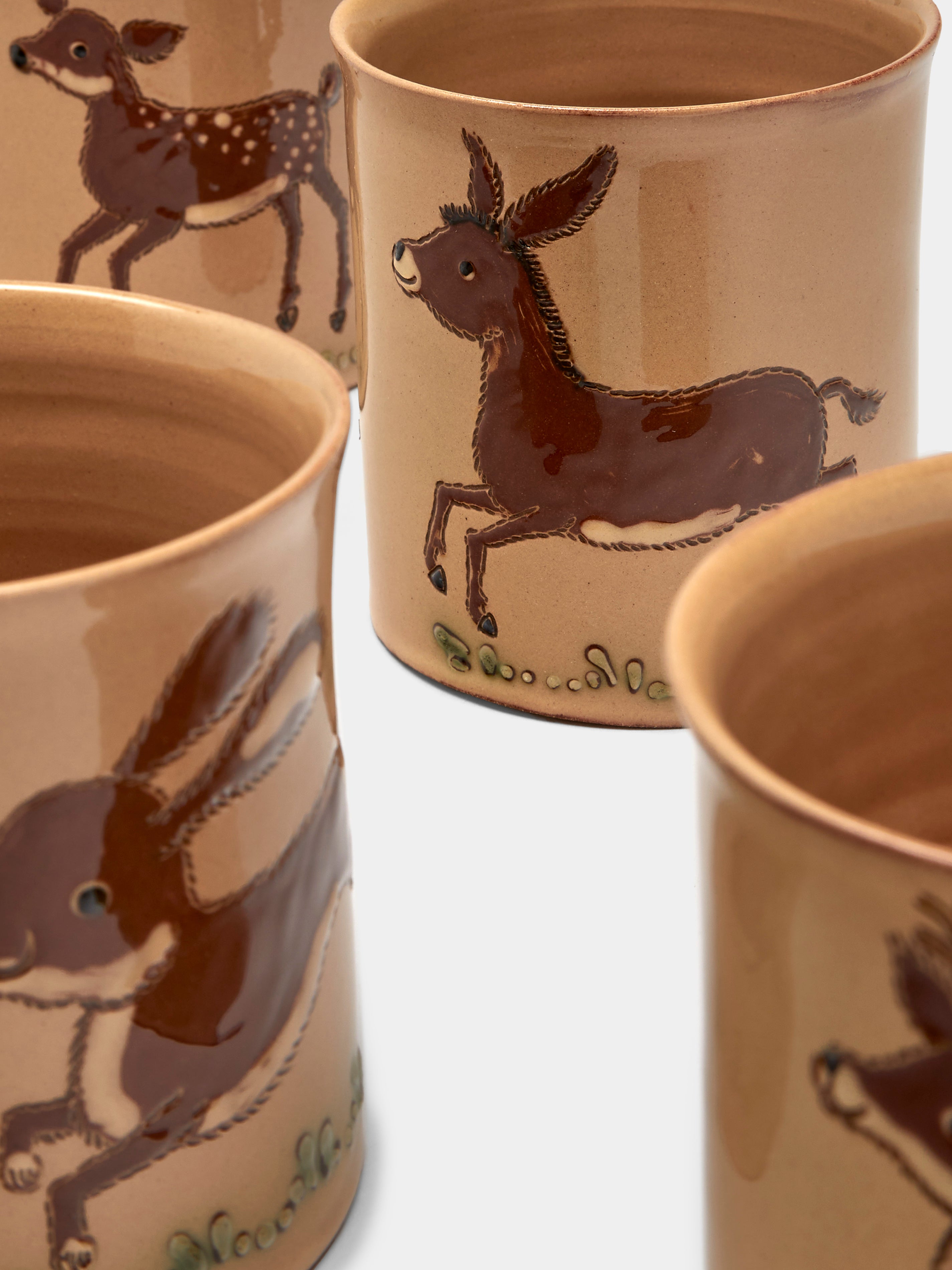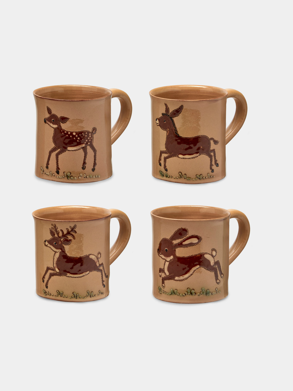 Poterie d’Évires Animals Hand-Painted Ceramic Mugs (Set of 4)