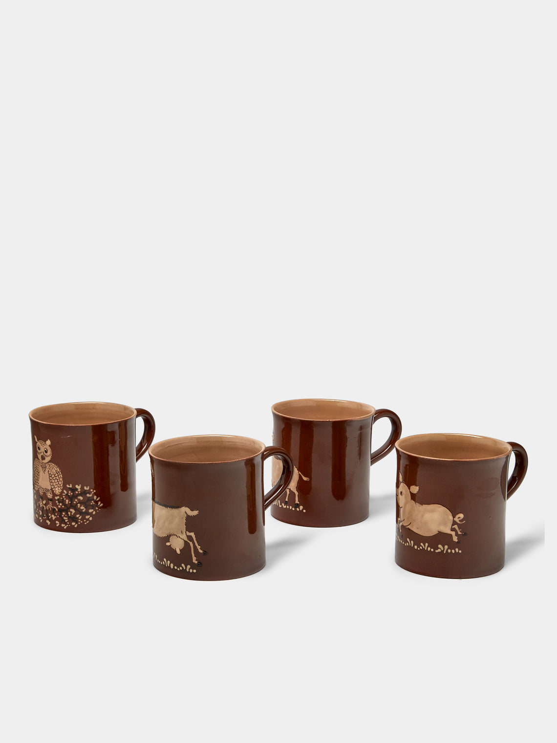 Poterie d’Évires Animals Hand-Painted Ceramic Mugs (Set of 4)