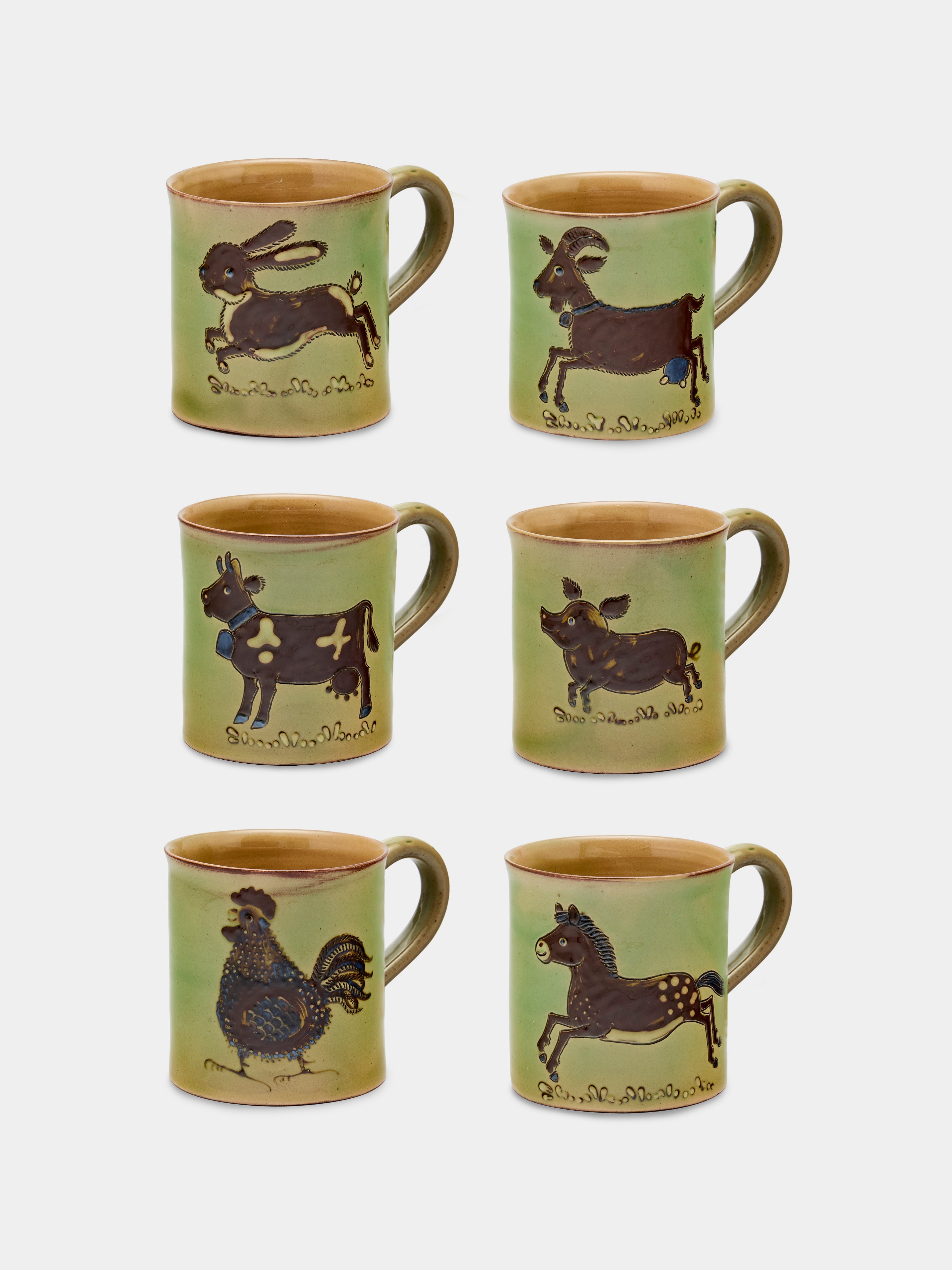 Poterie d’Évires Animals Hand-Painted Ceramic Mugs (Set of 6)