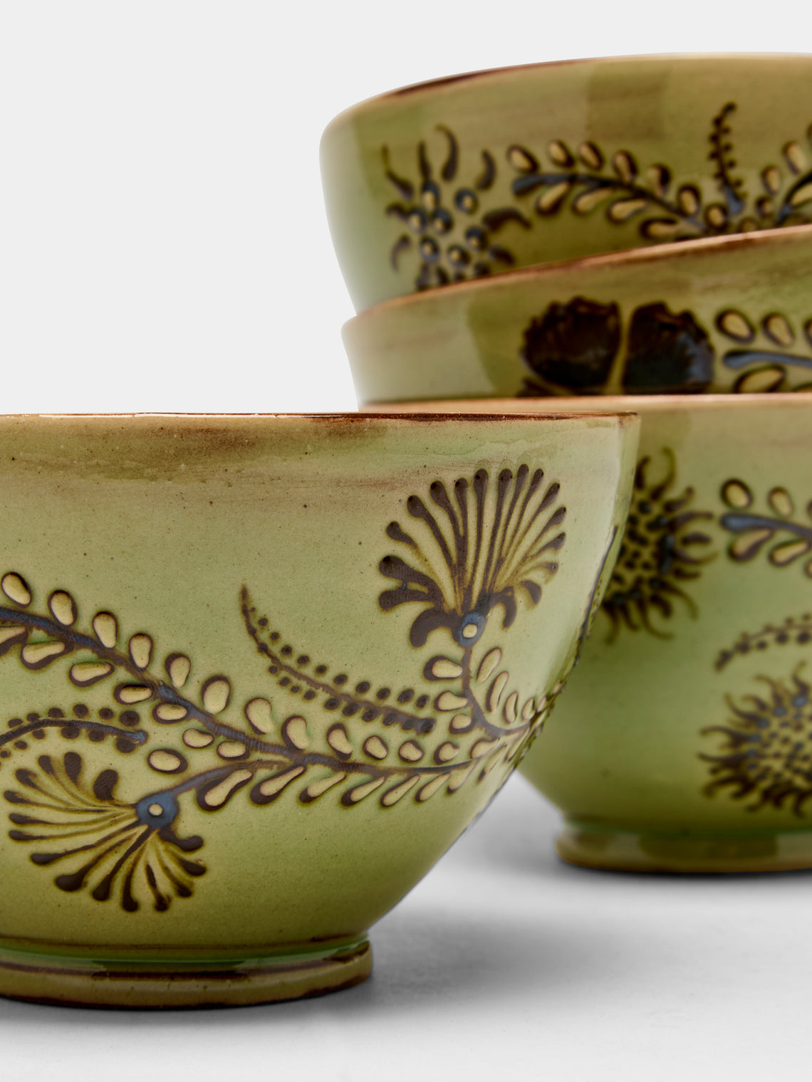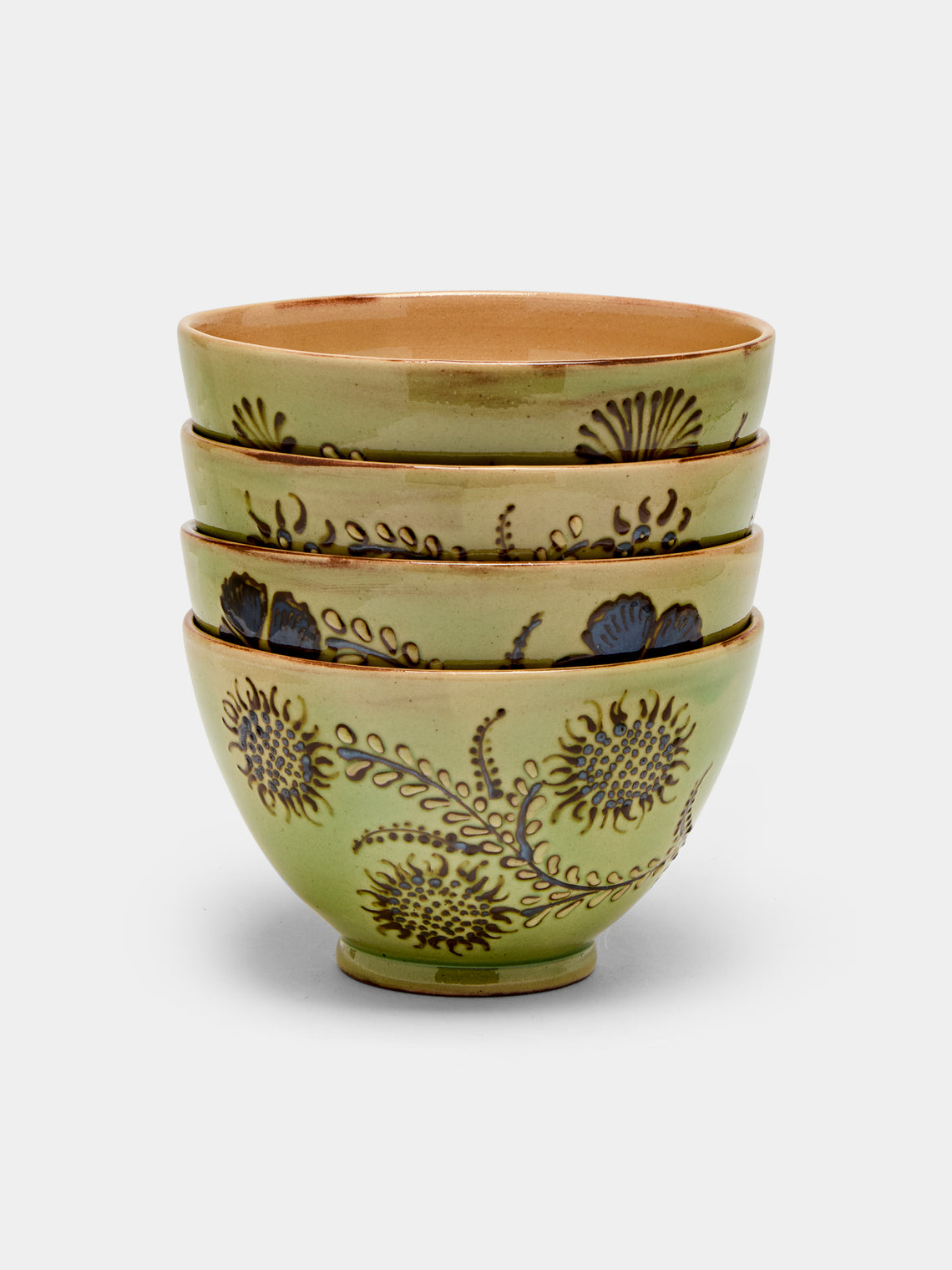 Poterie d’Évires Flowers Hand-Painted Ceramic Cereal Bowls (Set of 4)
