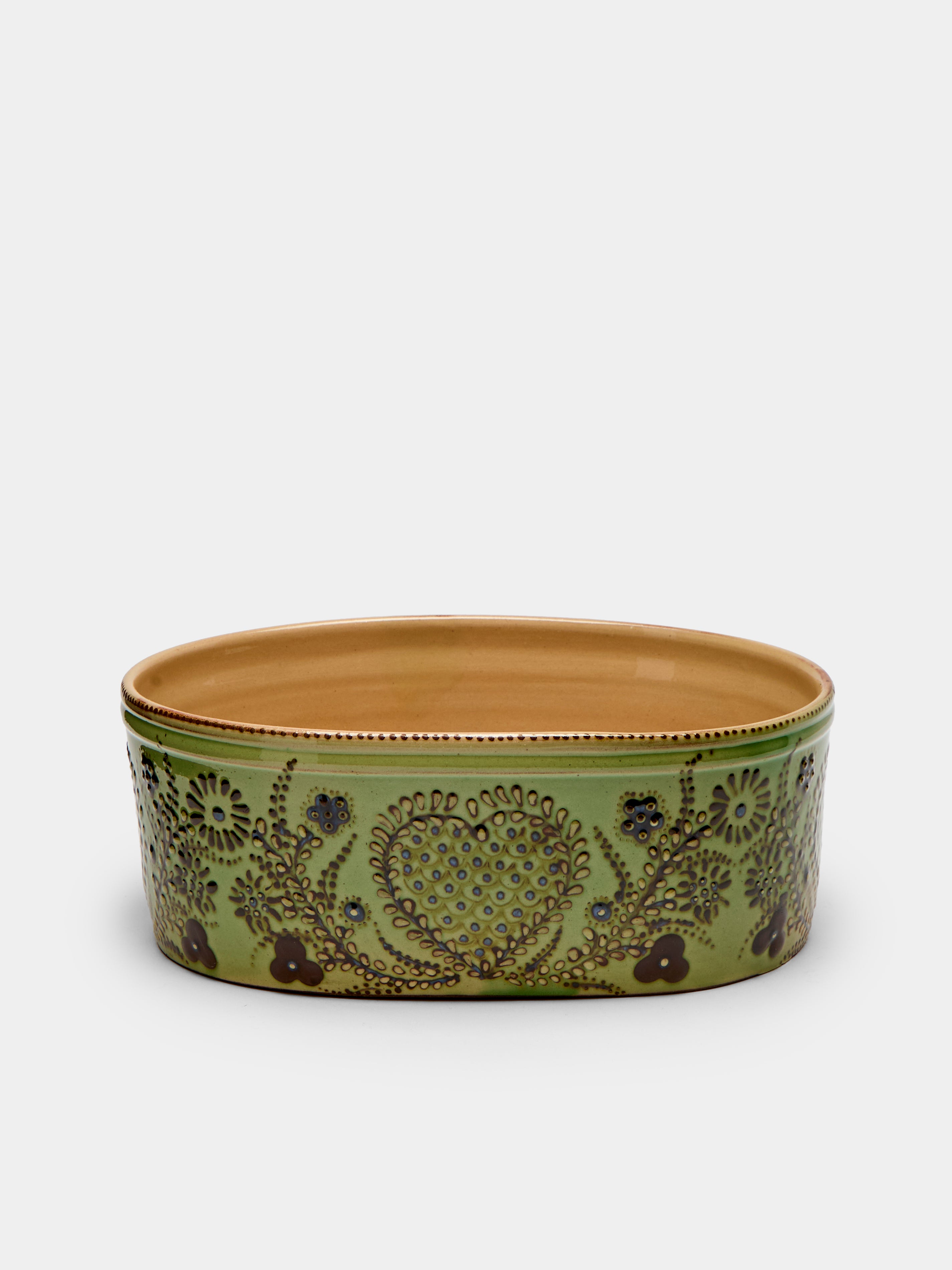 Poterie d’Évires Hearts Hand-Painted Ceramic Oval Serving Dish
