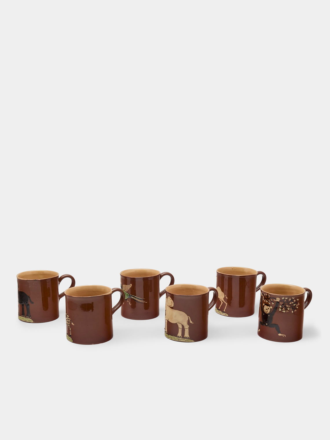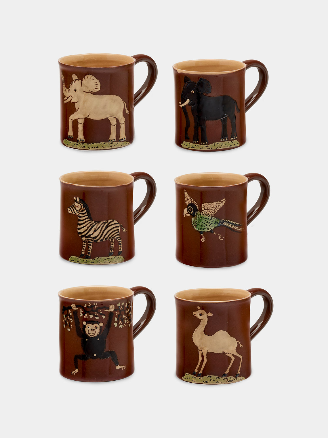 Poterie d’Évires Safari Hand-Painted Ceramic Mugs (Set of 6)