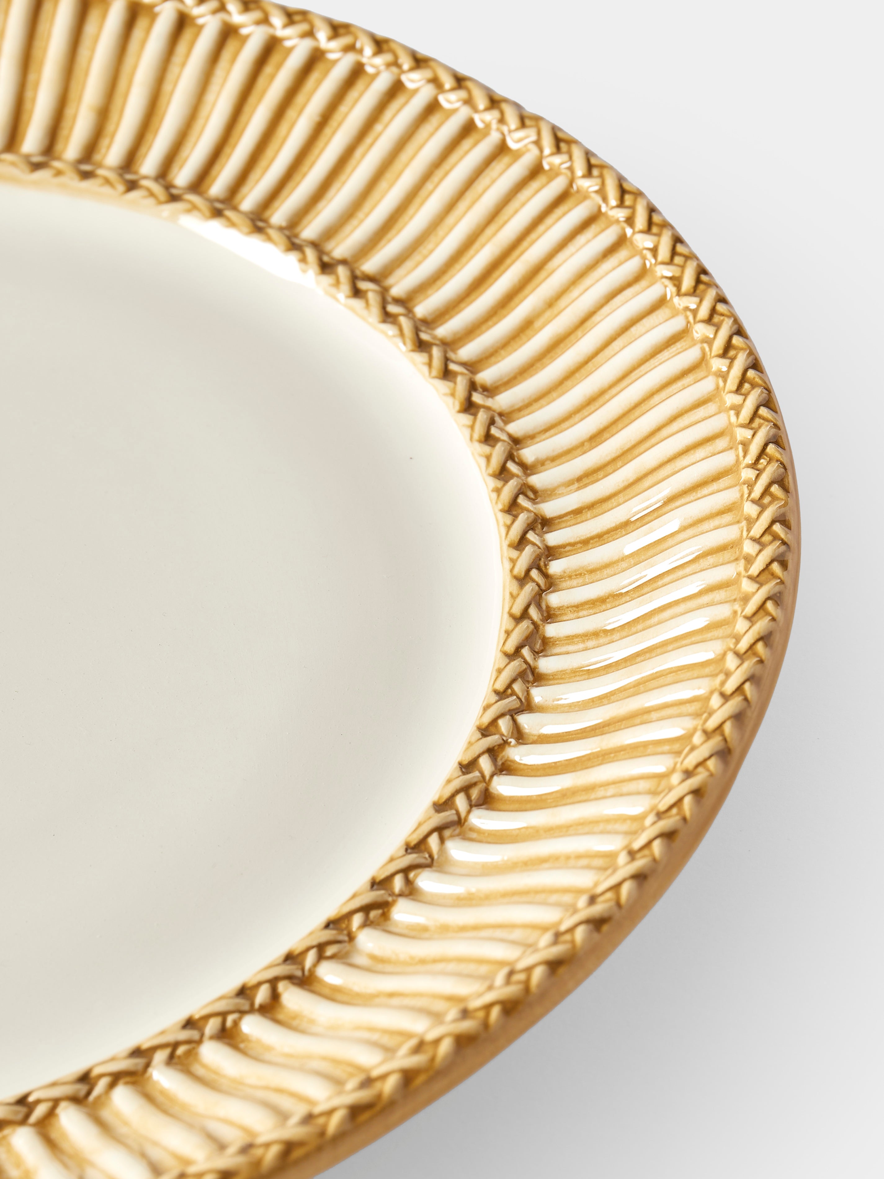 Wicker Hand-Painted Ceramic Oval Platter32cm (h) x 4cm (w) x 45cm (l) / 12.5" (h) x 1.6" (w) x 17.6" (l)