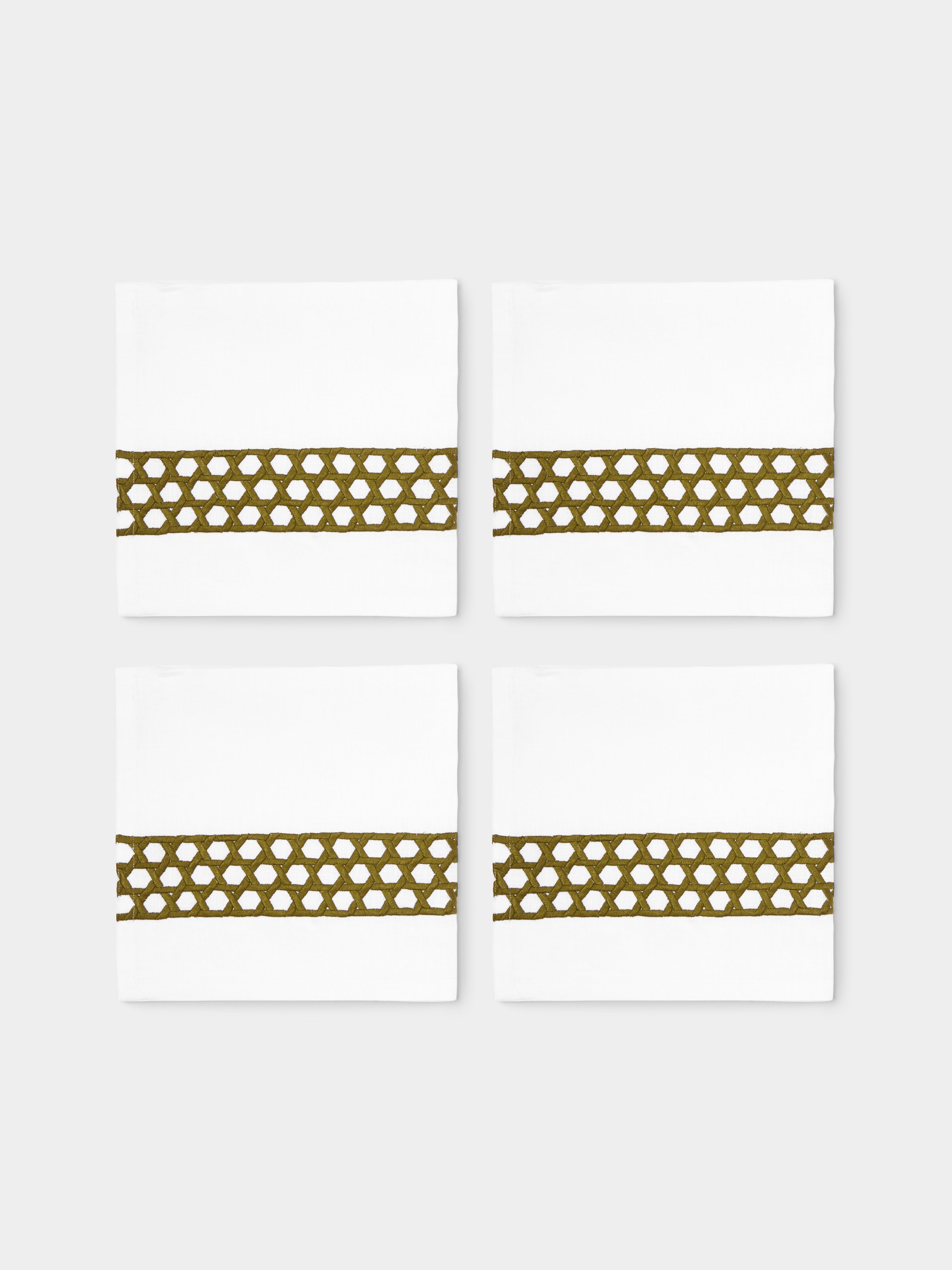The Table Love The Rattan Weave Hand-Embroidered Linen Napkins (Set of 4)