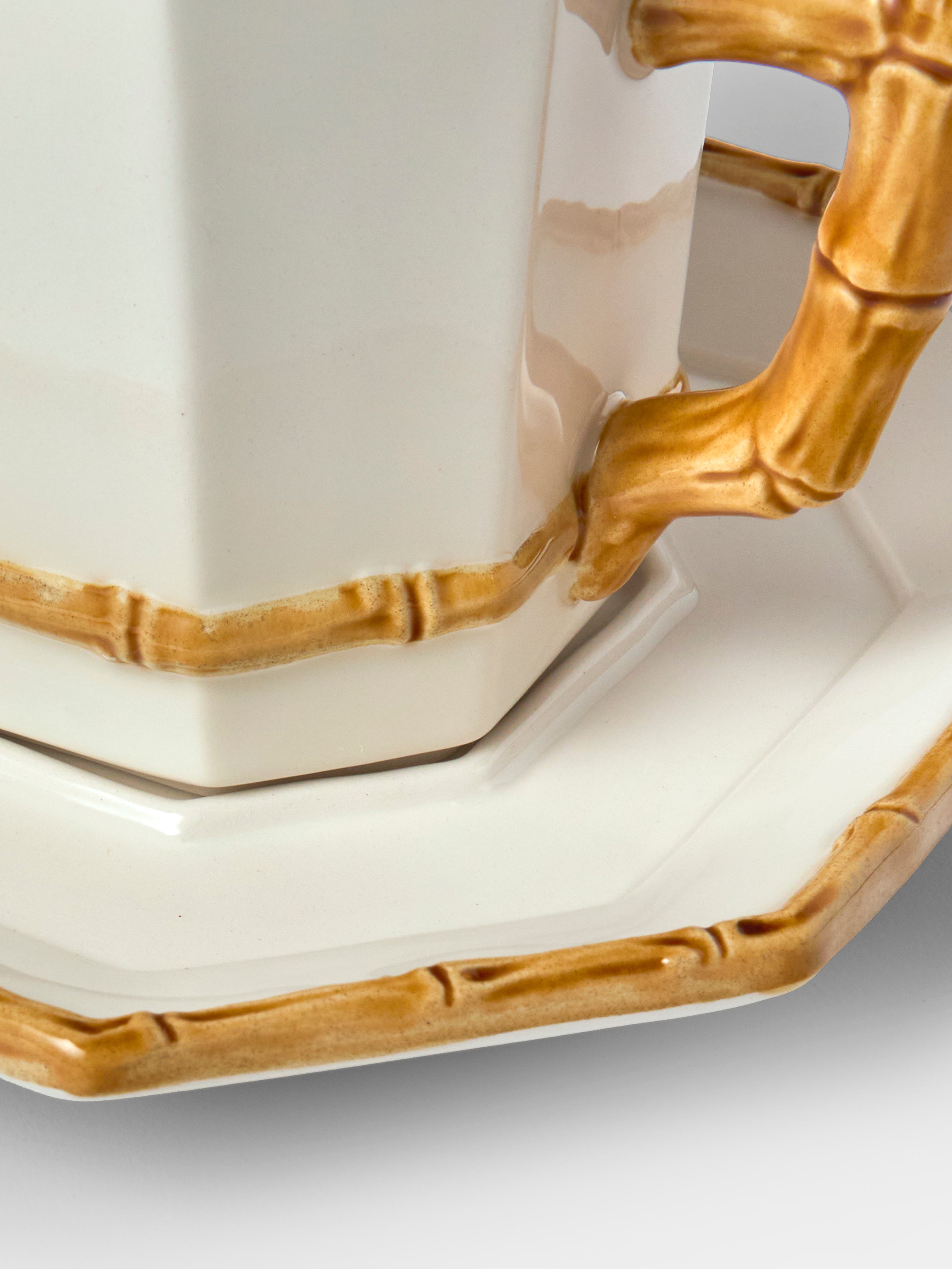 Bamboo Hand-Painted Ceramic Teacup and Saucercup: 9cm (h) x 9cm (w) x 12cm (l) // saucer: 2cm (h) x 16cm (w) x 16cm (l) / " (h) x 3.5" (w) x " (l)