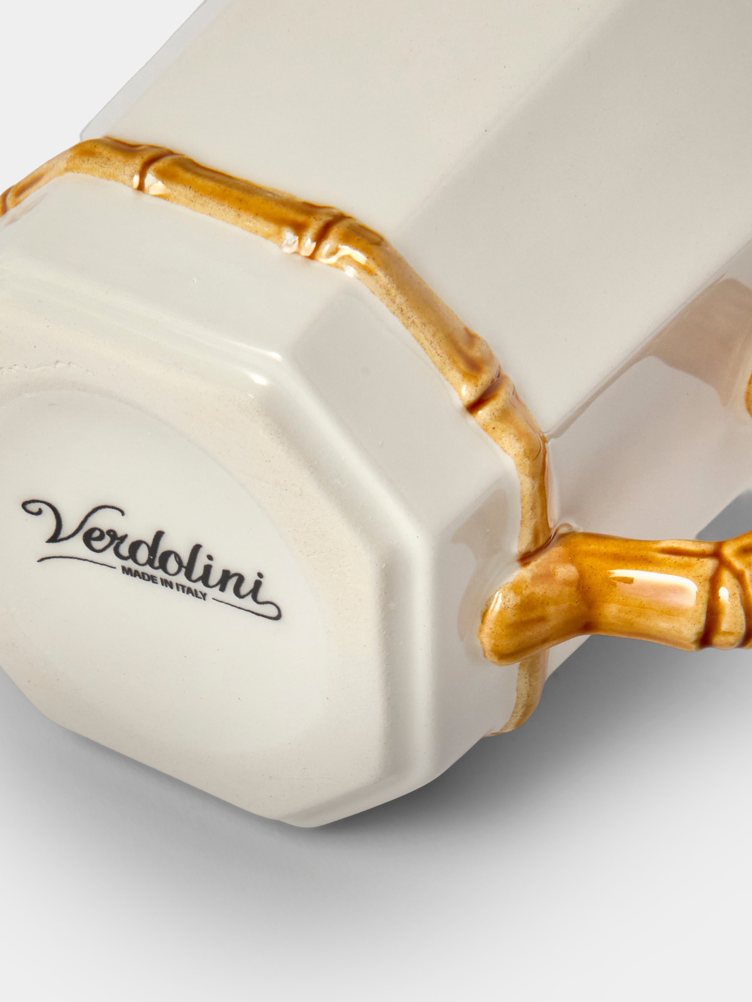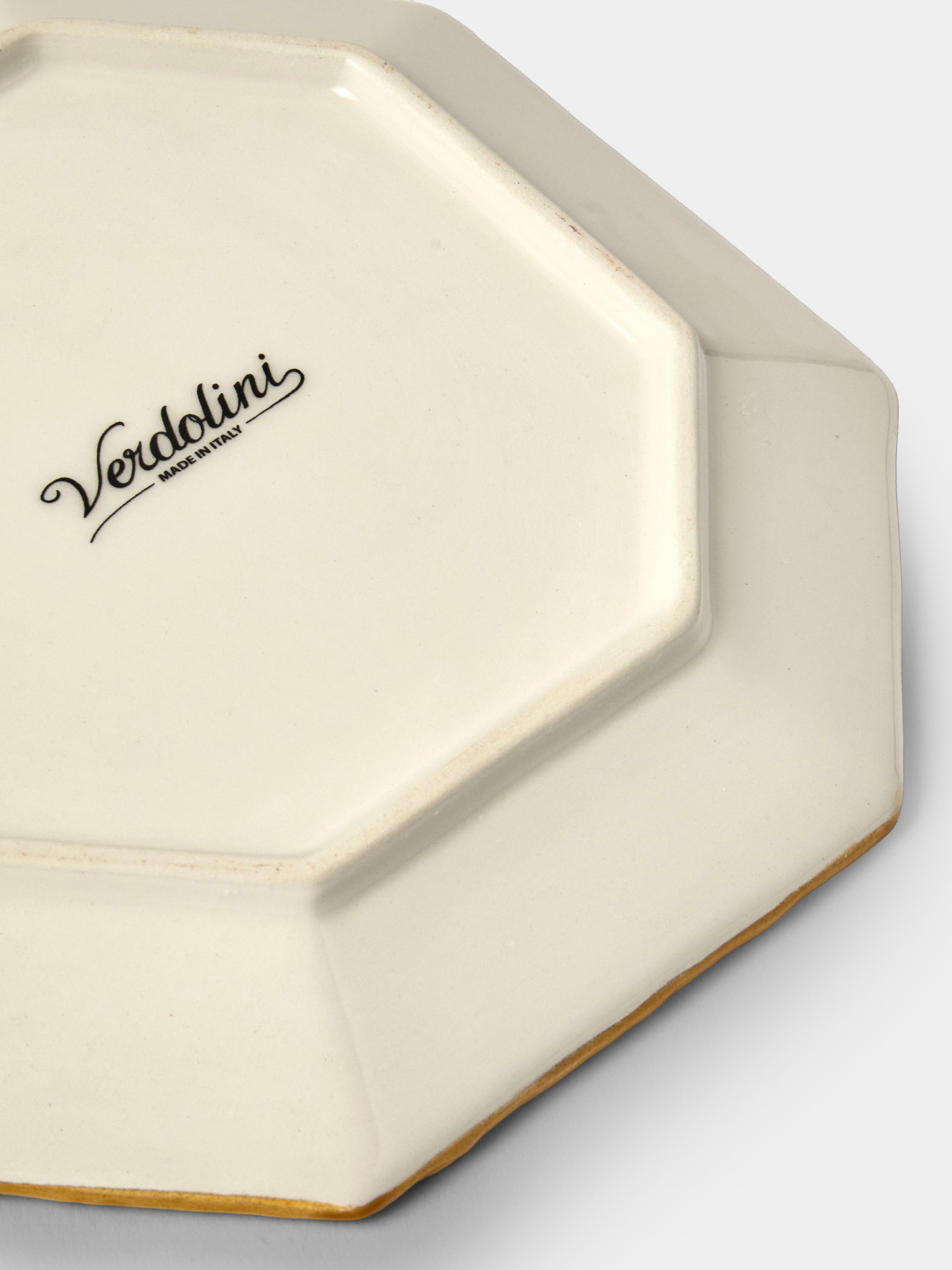 Born in northern Italy in 1964, Verdolini tells its story through ceramics, where earth, glaze and imagination meet. Each piece is shaped and finished by hand, its character revealed through centuries-old techniques and a quiet sense of wonder. Majolica brings to life scenes of foliage and frogs, while Traforato engraving lends lace-like intricacy to borders and edges. A Verdolini specialty lies in reviving archival designs, where historic patterns are reinterpreted with a playful eye and deep respect for the past.