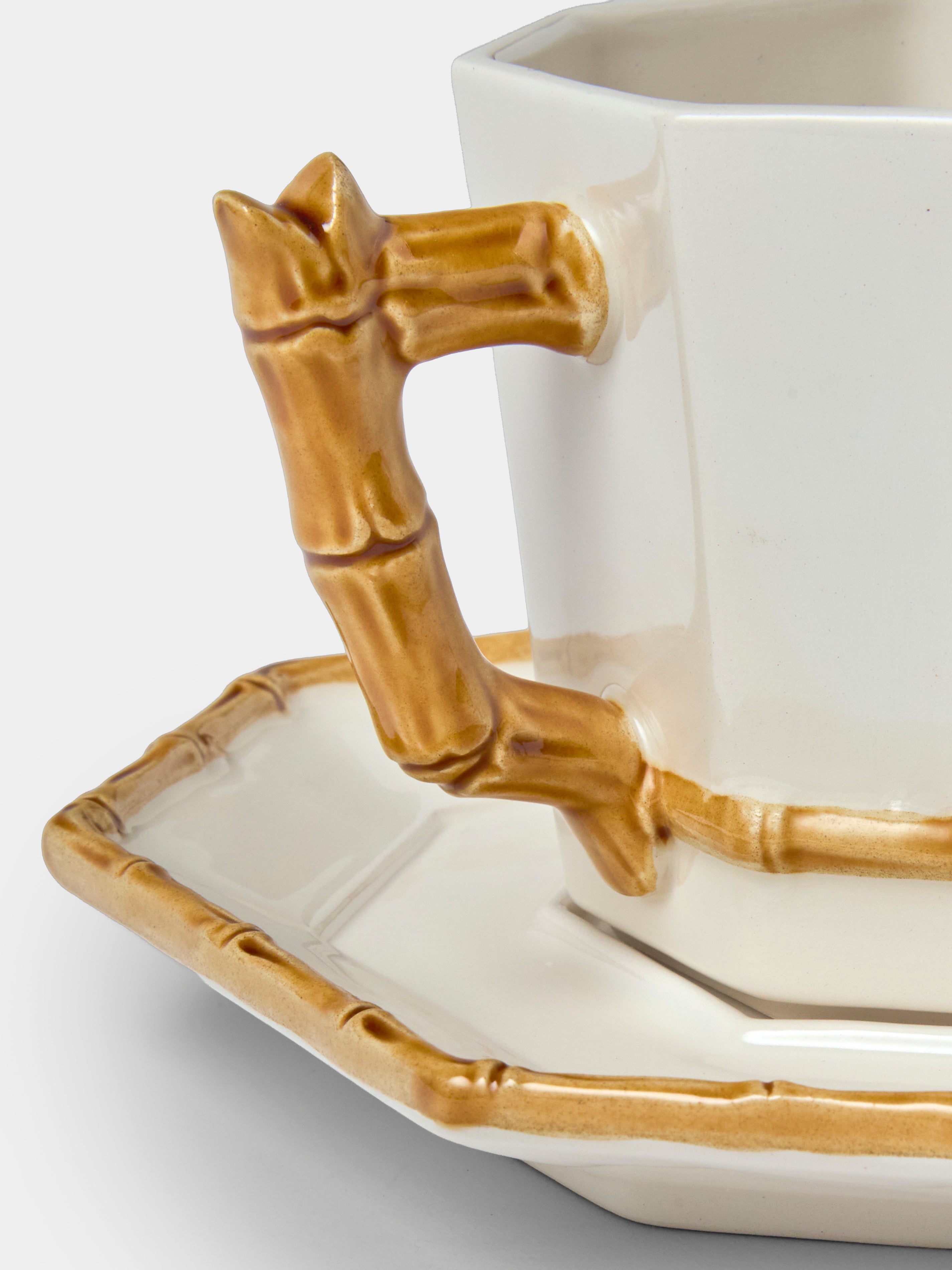 Verdolini Bamboo Hand-Painted Ceramic Teacup and Saucer