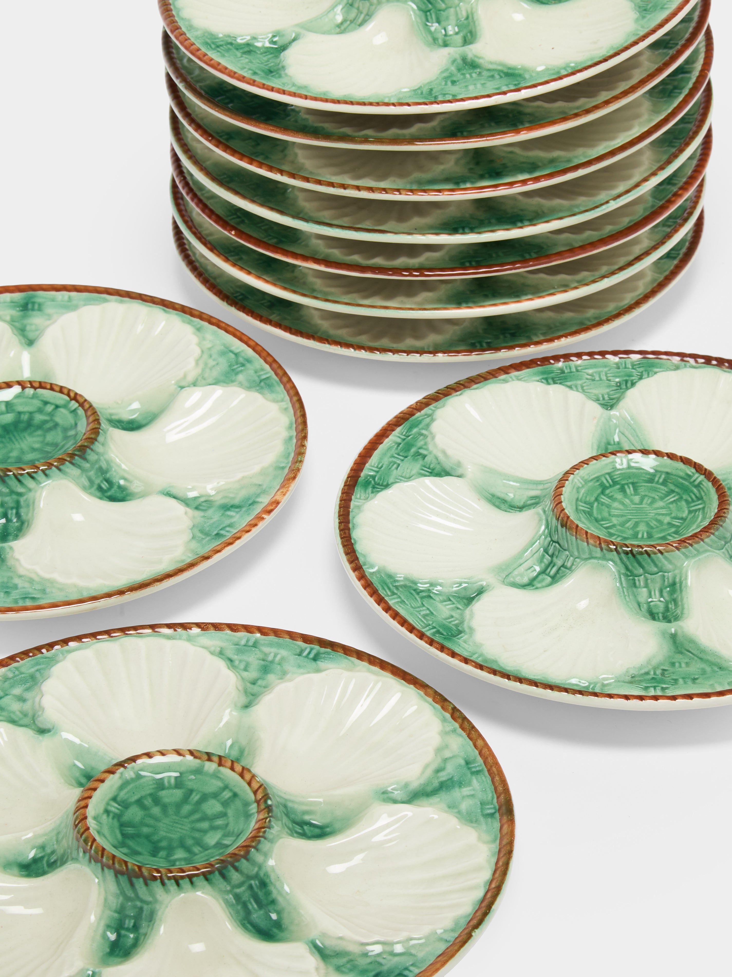 Antique and Vintage 1950s Ceramic Oyster Plates – 9.5in/24cm (Set of 10)