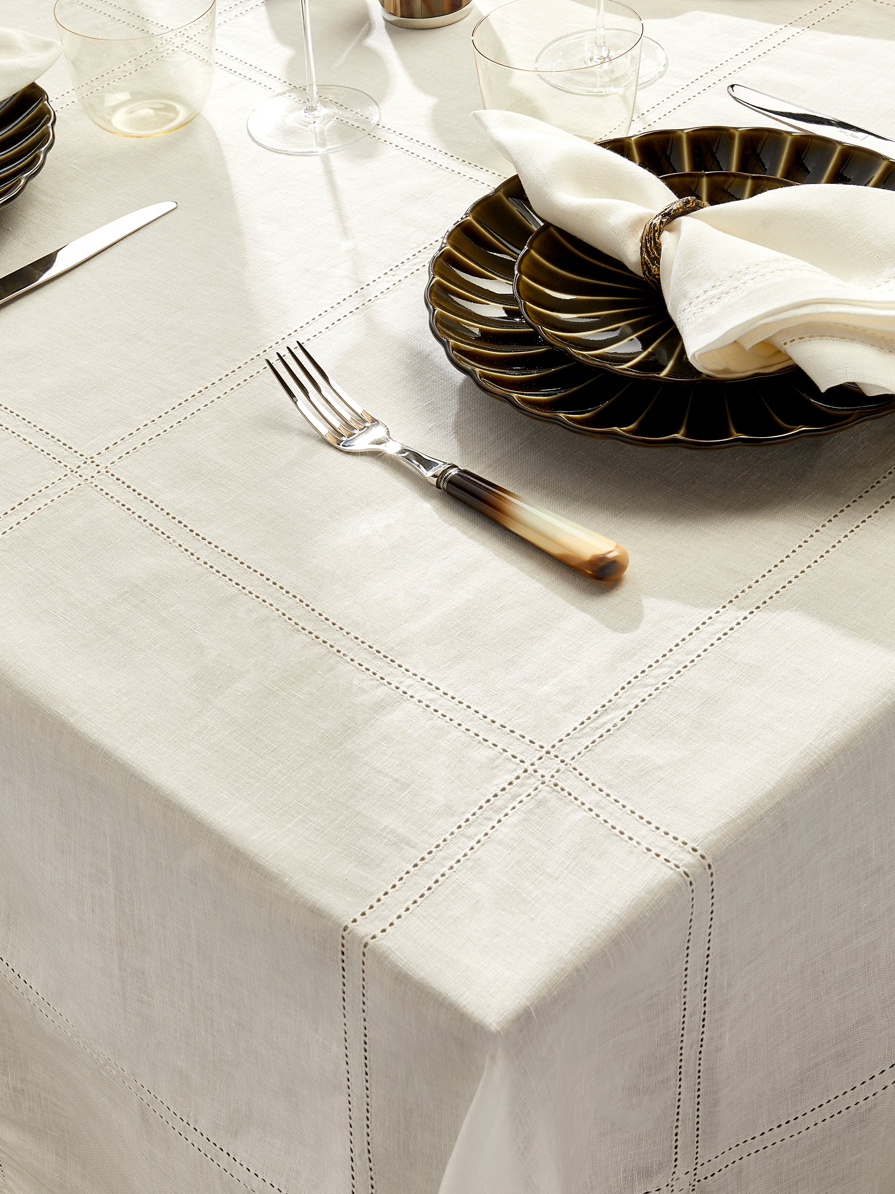 Volga Linen Double Hem-Stitch Linen Check Rectangular Tablecloth (177in/4.5m)