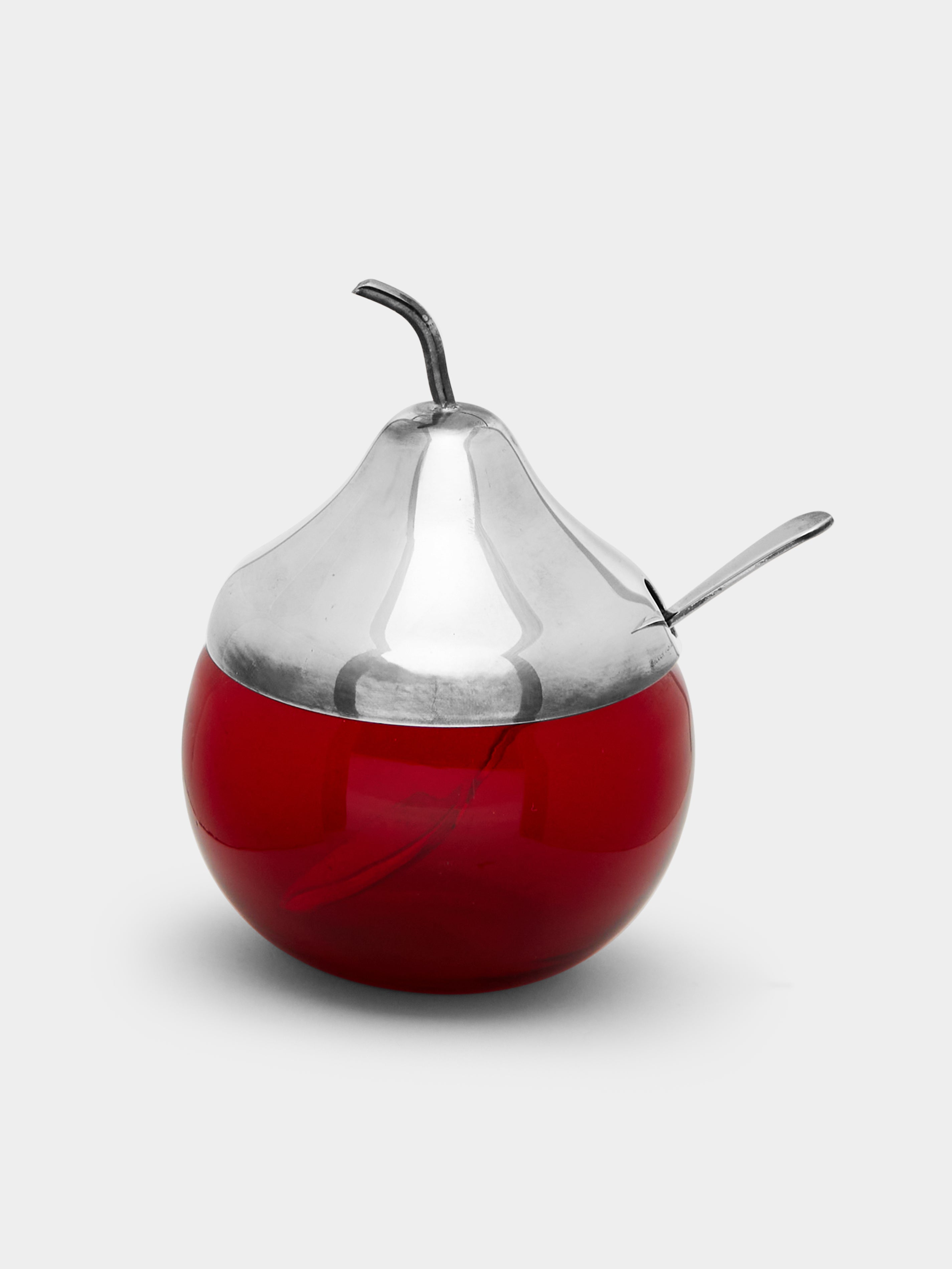 Antique and Vintage 1950s Silver-Plated Glass Apple and Pear Condiment Bowls