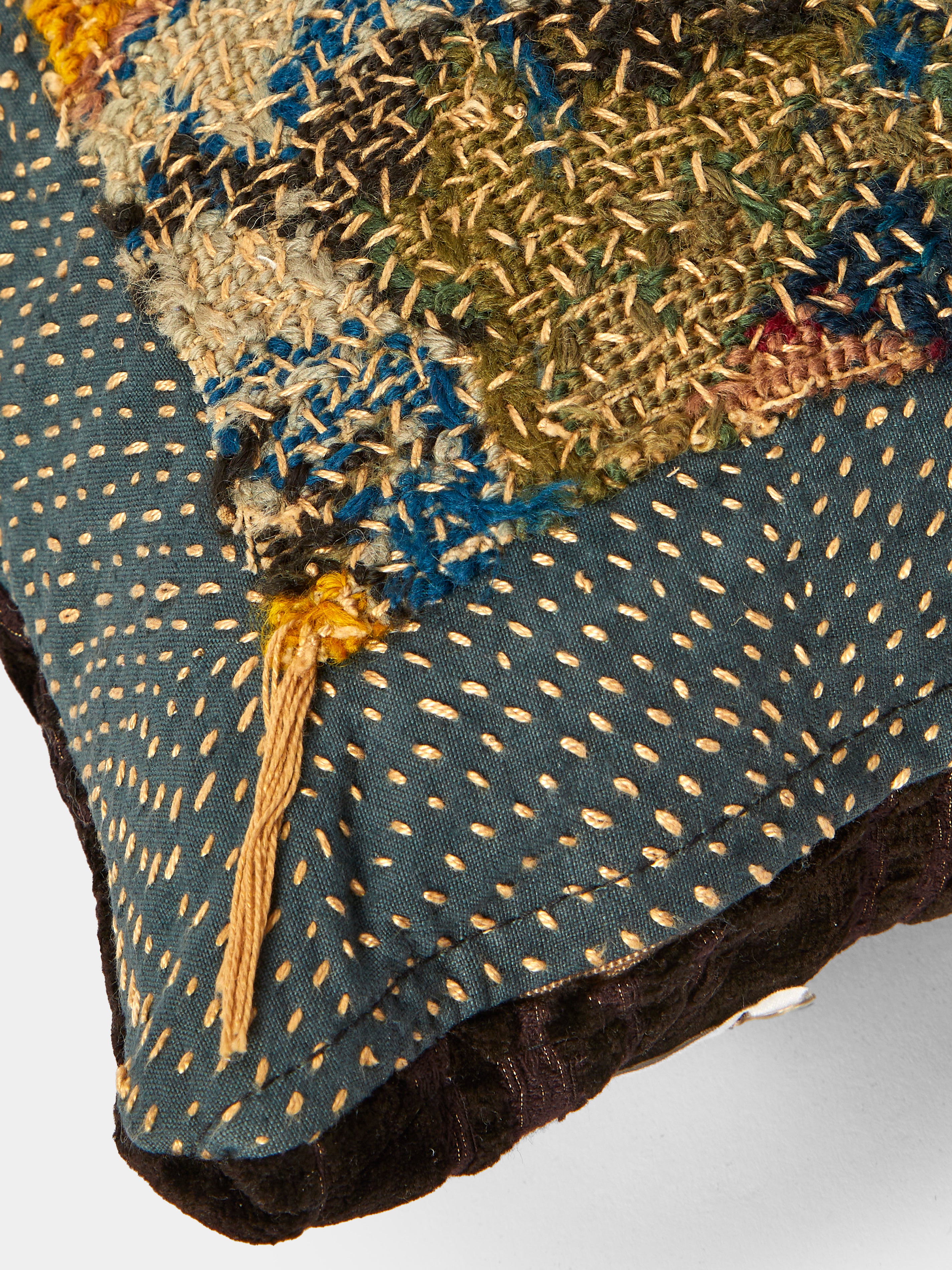By Walid 19th-Century Needlepoint Wool, Linen and Velvet Cushion (21.5in/55cm)