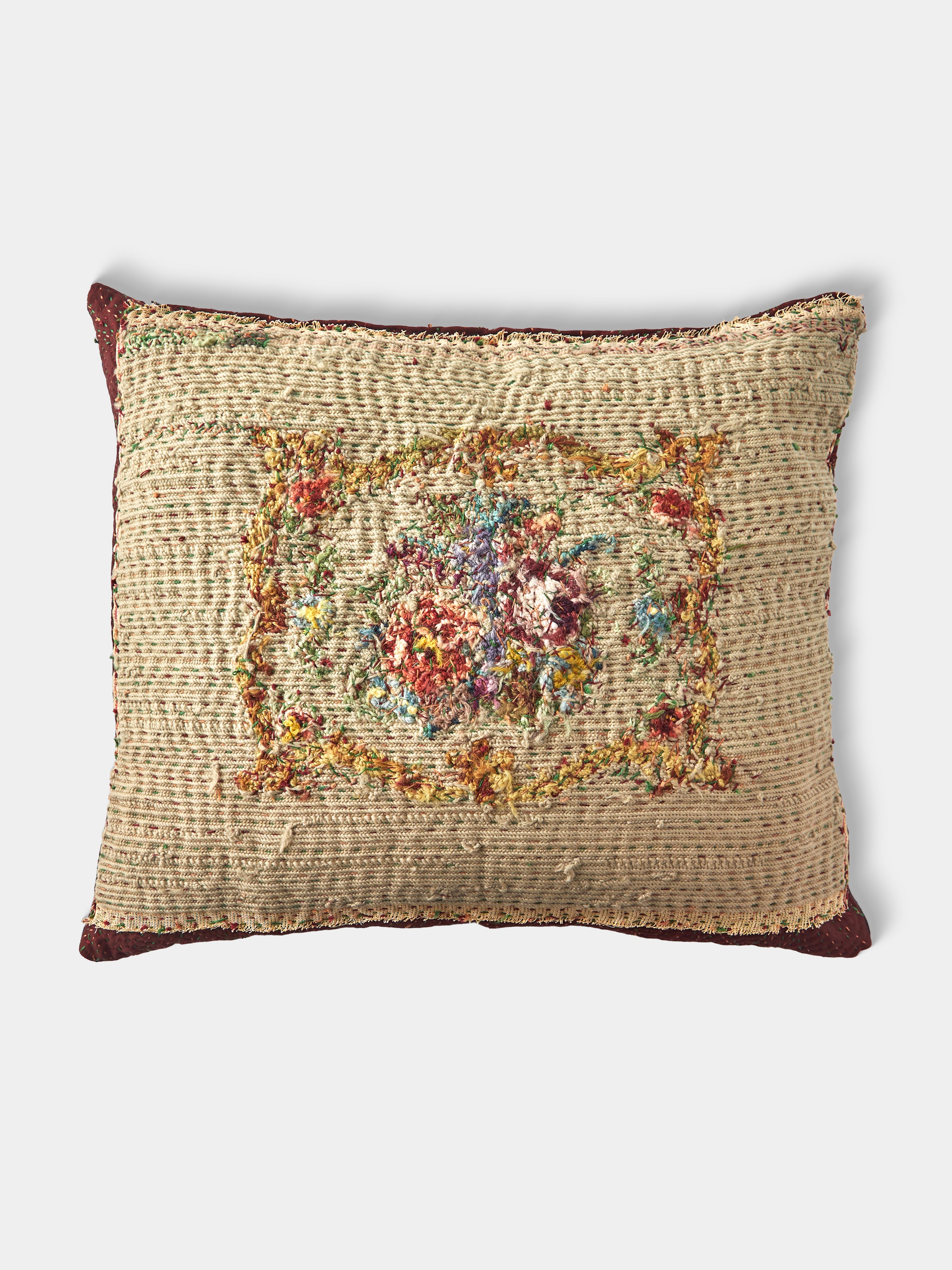 By Walid 19th-Century Victorian Needlepoint Wool and Marcella Cotton Cushion (21.5in/55cm)