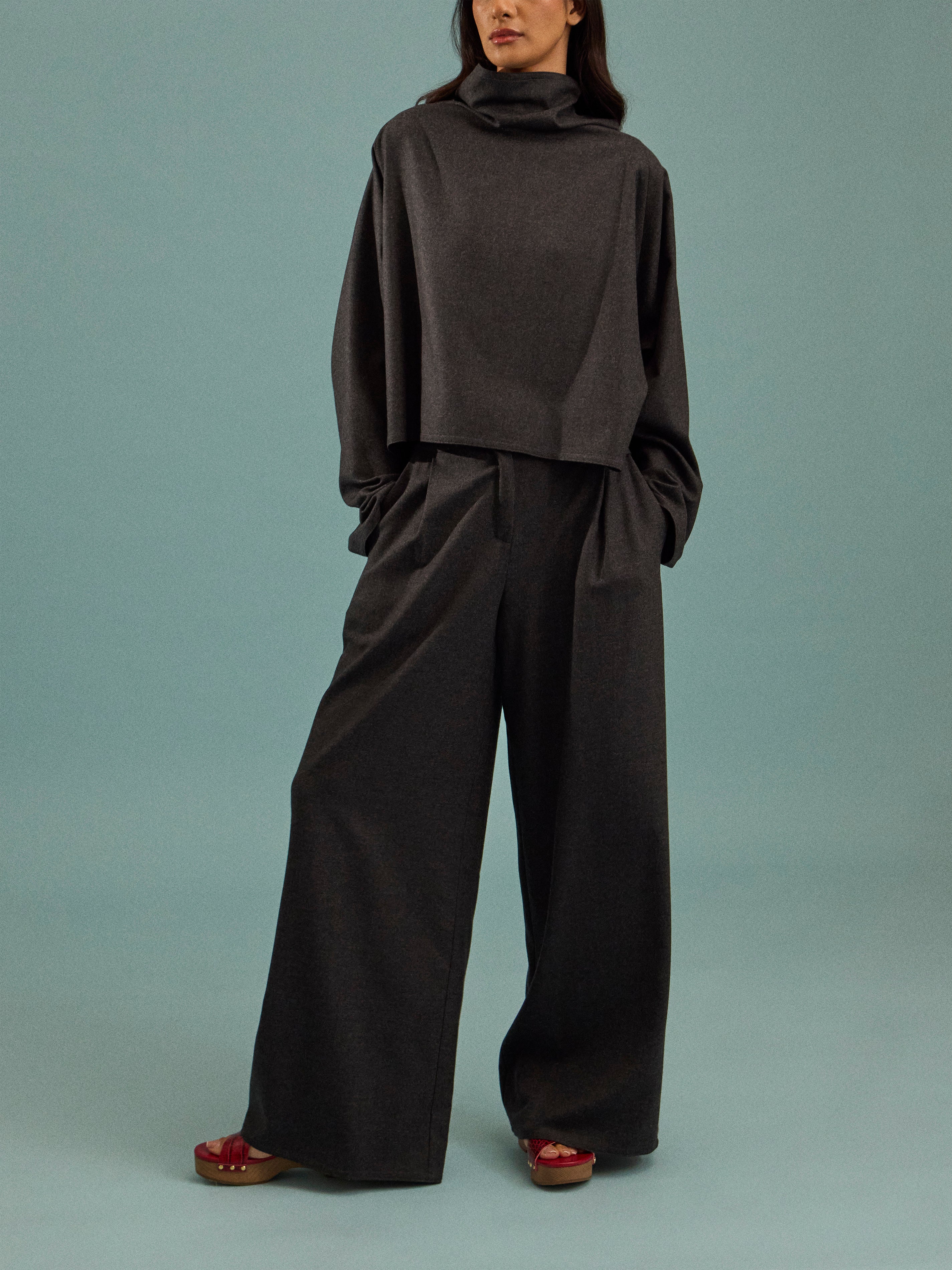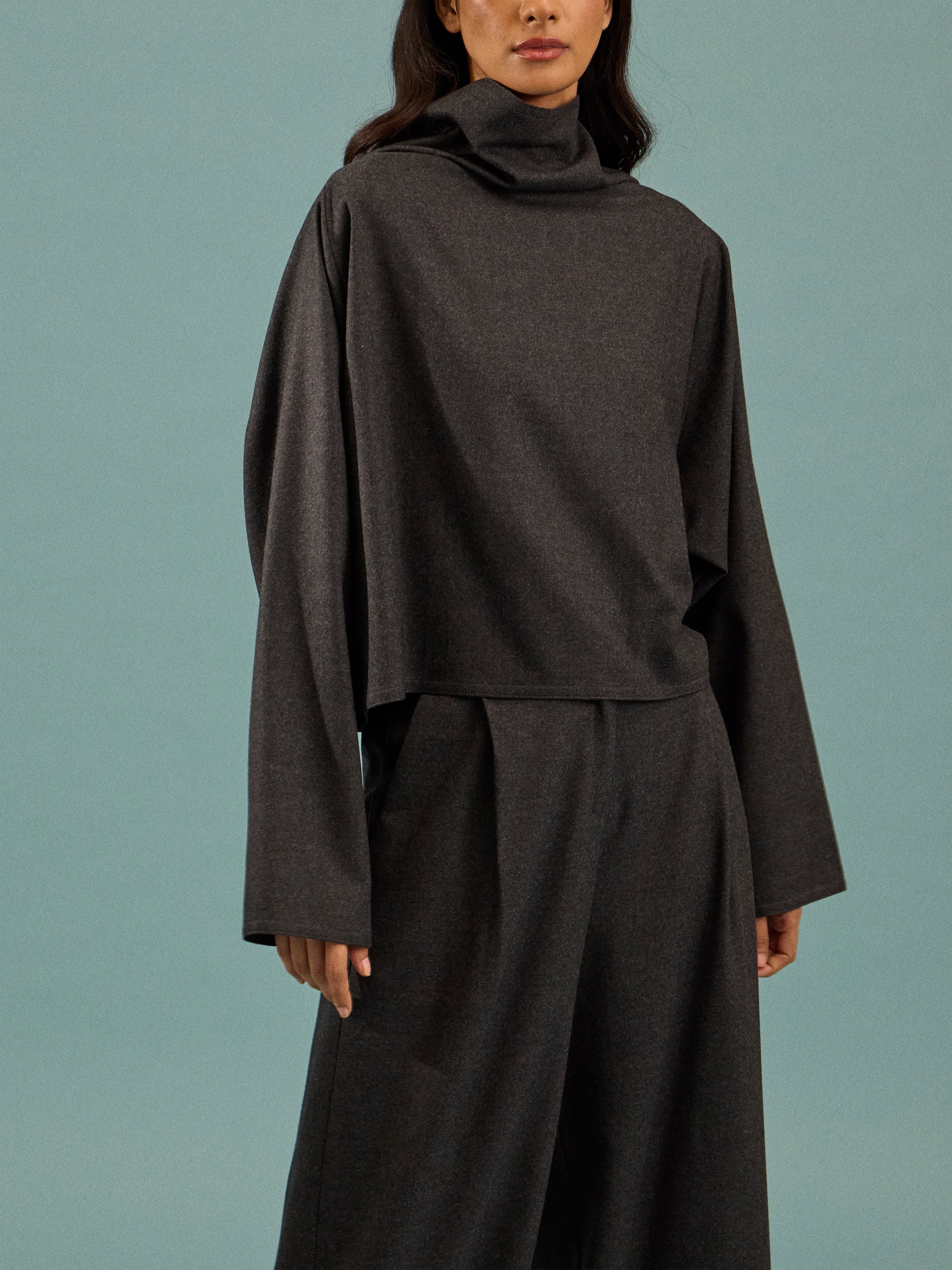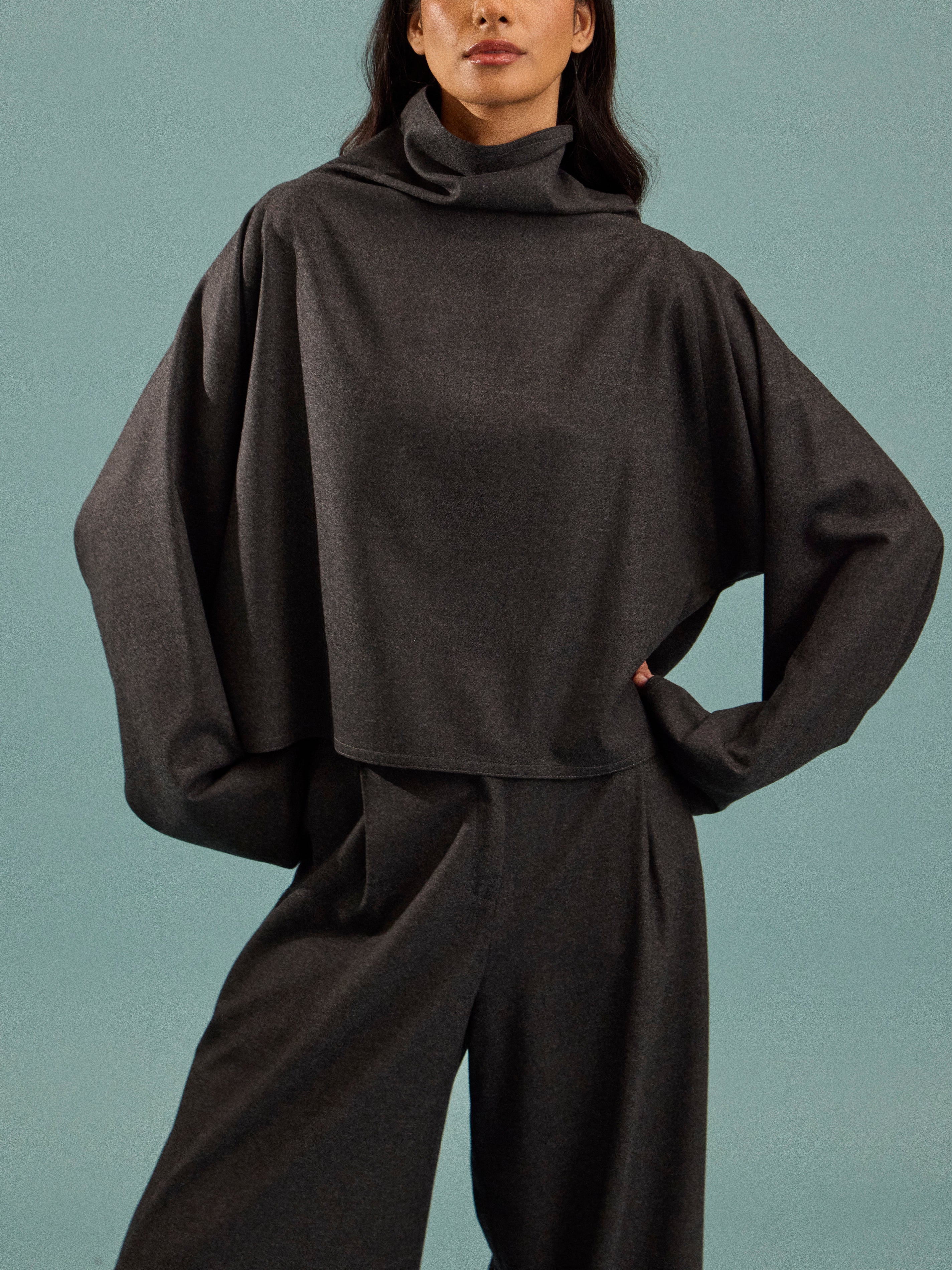 Dusan Batwing Wool Flannel Short Oversized Top | One Size