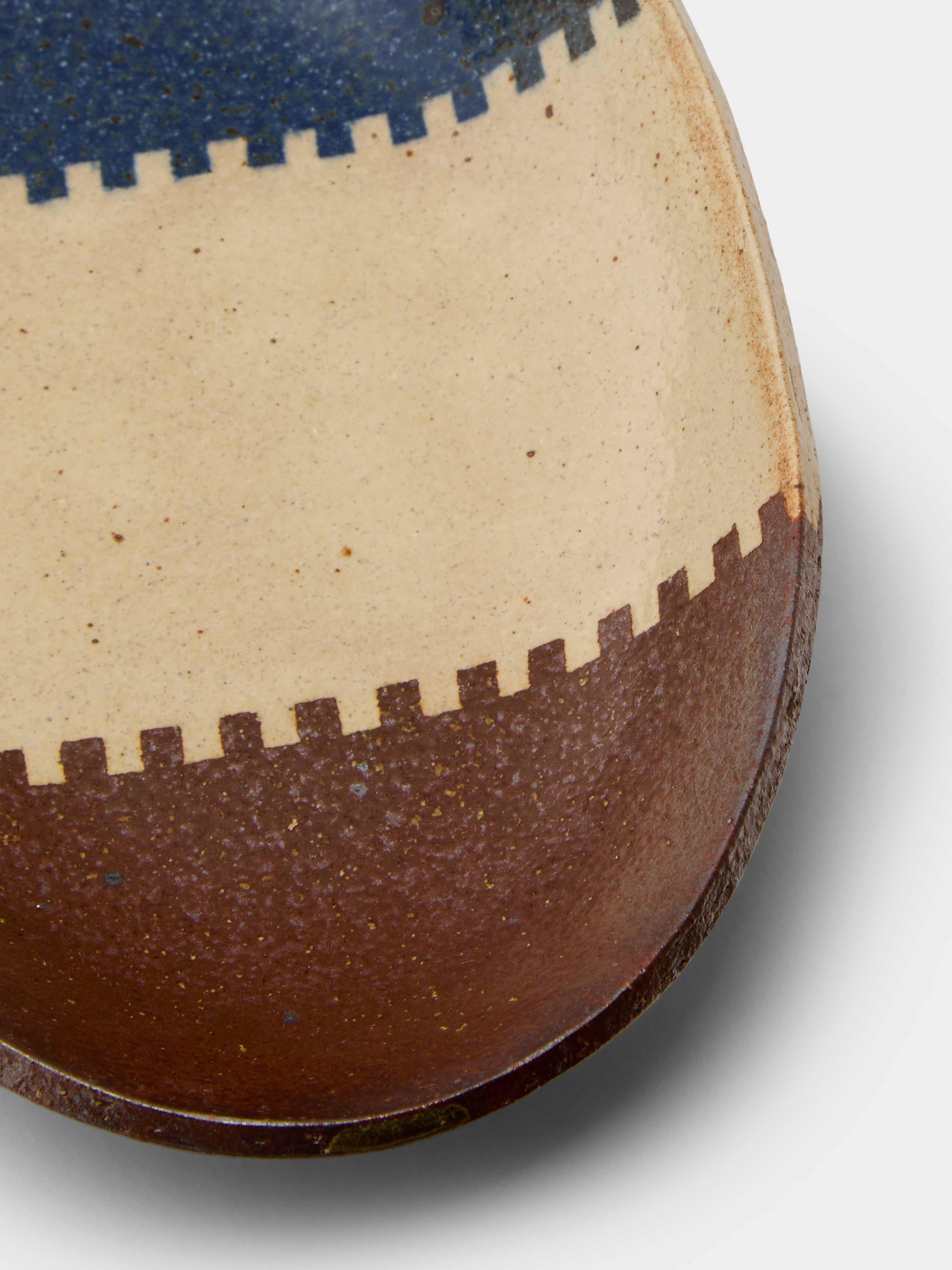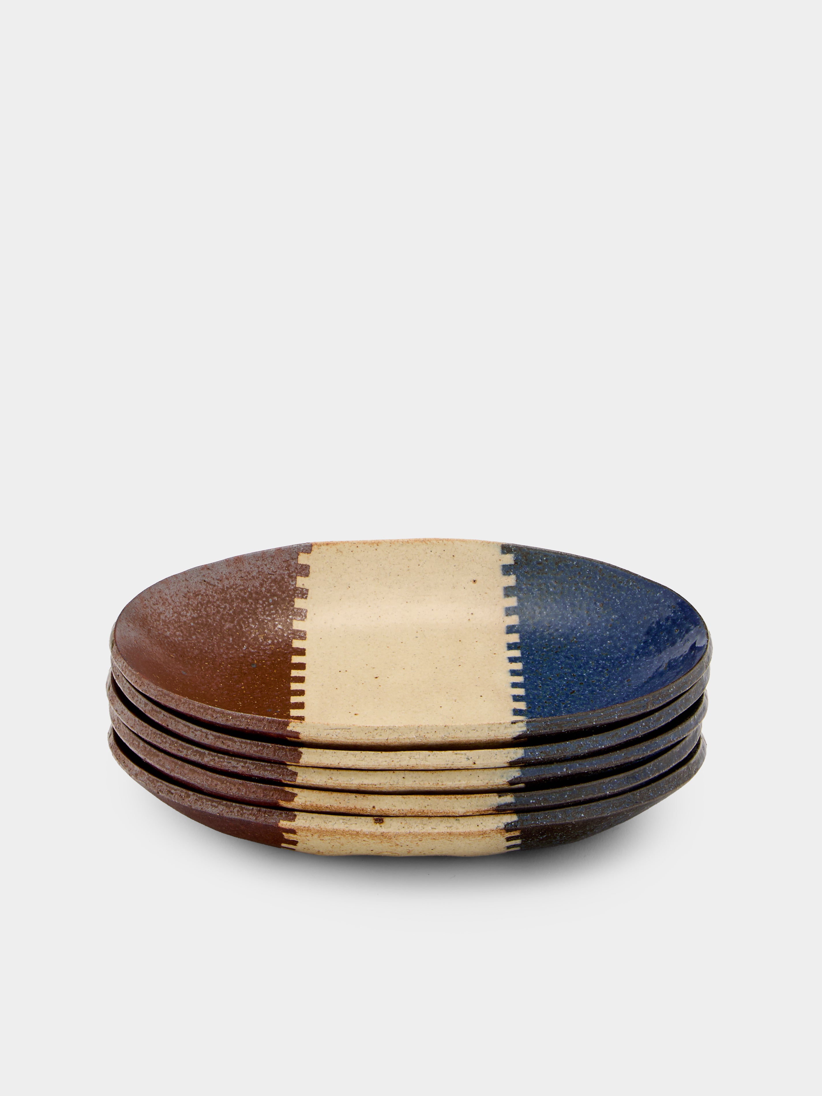 Headed byYoshikuniSugimoto and nestled in Japan’s Tottori Prefecture,Makidani-gamais a ceramic studio with a distinctly geometric point of view. Its signature lies in nerikomi—a technique, akin to neriage, where layers of colored clay are stacked and sliced to reveal intricate patterns.