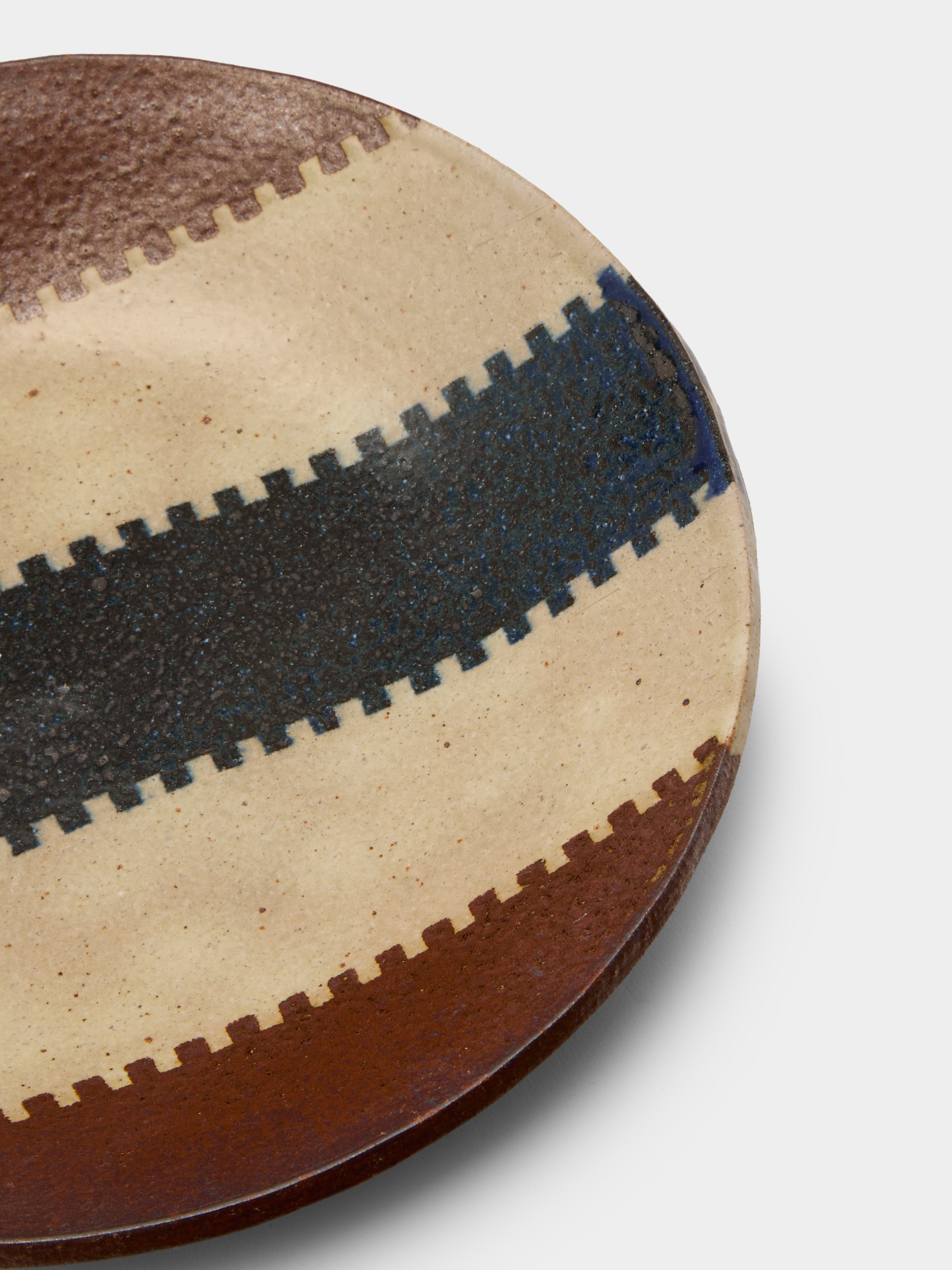 Headed byYoshikuniSugimoto and nestled in Japan’s Tottori Prefecture,Makidani-gamais a ceramic studio with a distinctly geometric point of view. Its signature lies in nerikomi—a technique, akin to neriage, where layers of colored clay are stacked and sliced to reveal intricate patterns.
