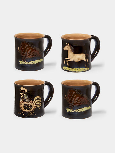 Poterie d’Évires Animals Hand-Painted Ceramic Mugs (Set of 4)