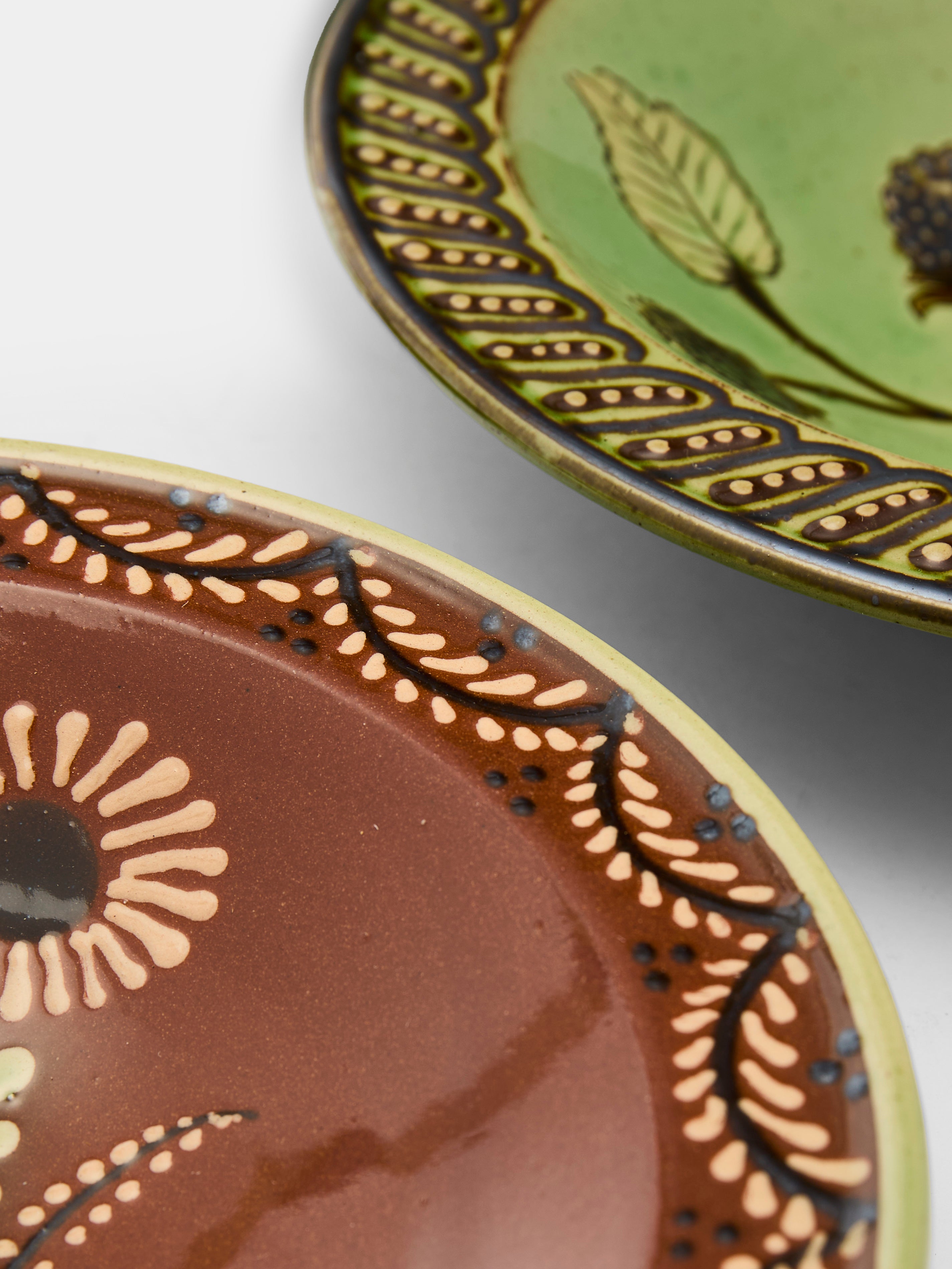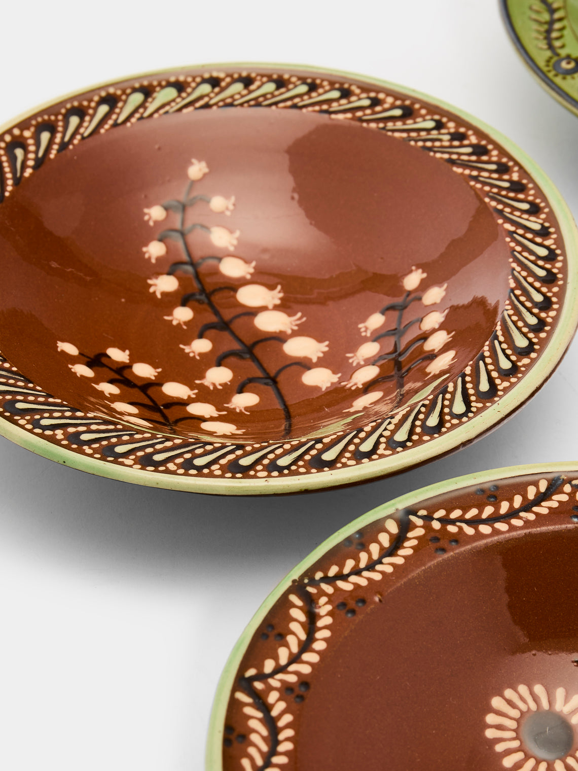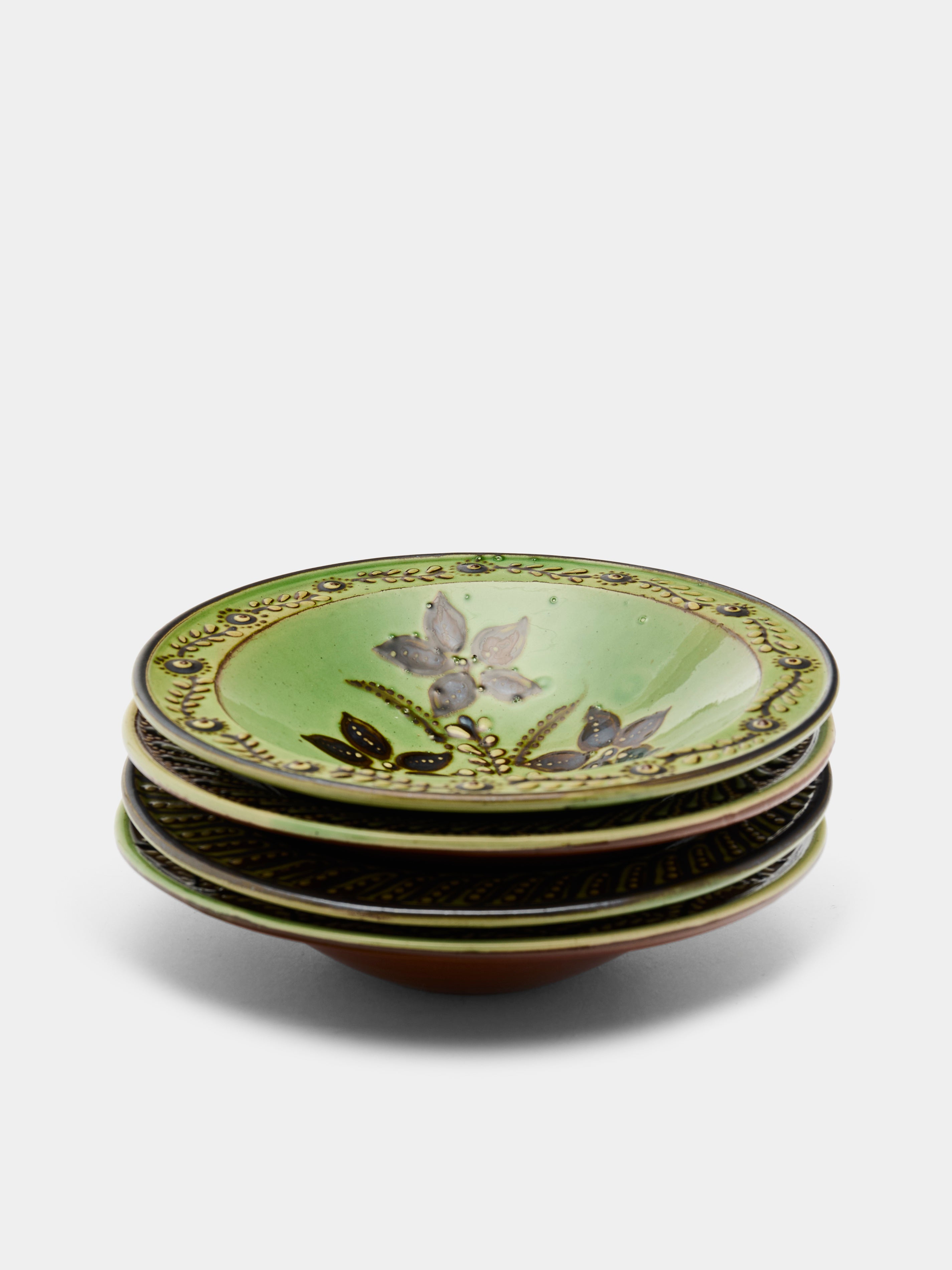 Jean-Christophe Hermann grew up near Lake Annecy in France, and recalls visiting an old pottery at just five years old that inspired him to pursue ceramics – a moment that led to the opening of Poterie d’Évires in 1971. Influenced by the landscape of their Haute-Savoie home, the Hermann family – Jean-Christophe and David, the father and son duo – hand-paint local delights onto their light, earthy and decorative clay; alpine flowers like tiny crocuses and soldanellas often feature, as well as native creatures such as Chamois and Ibex. ABASK made a special road-trip to the French Alps to hand-pick a curation from their exquisite collection. In 1981, after exploring his region’s brocante for many years, Jean-Christophe opened a museum dedicated to the pottery and folk art of Savoie. It’s the largest and most comprehensive collection in the world and displays pieces that date as far back as the 12th century.