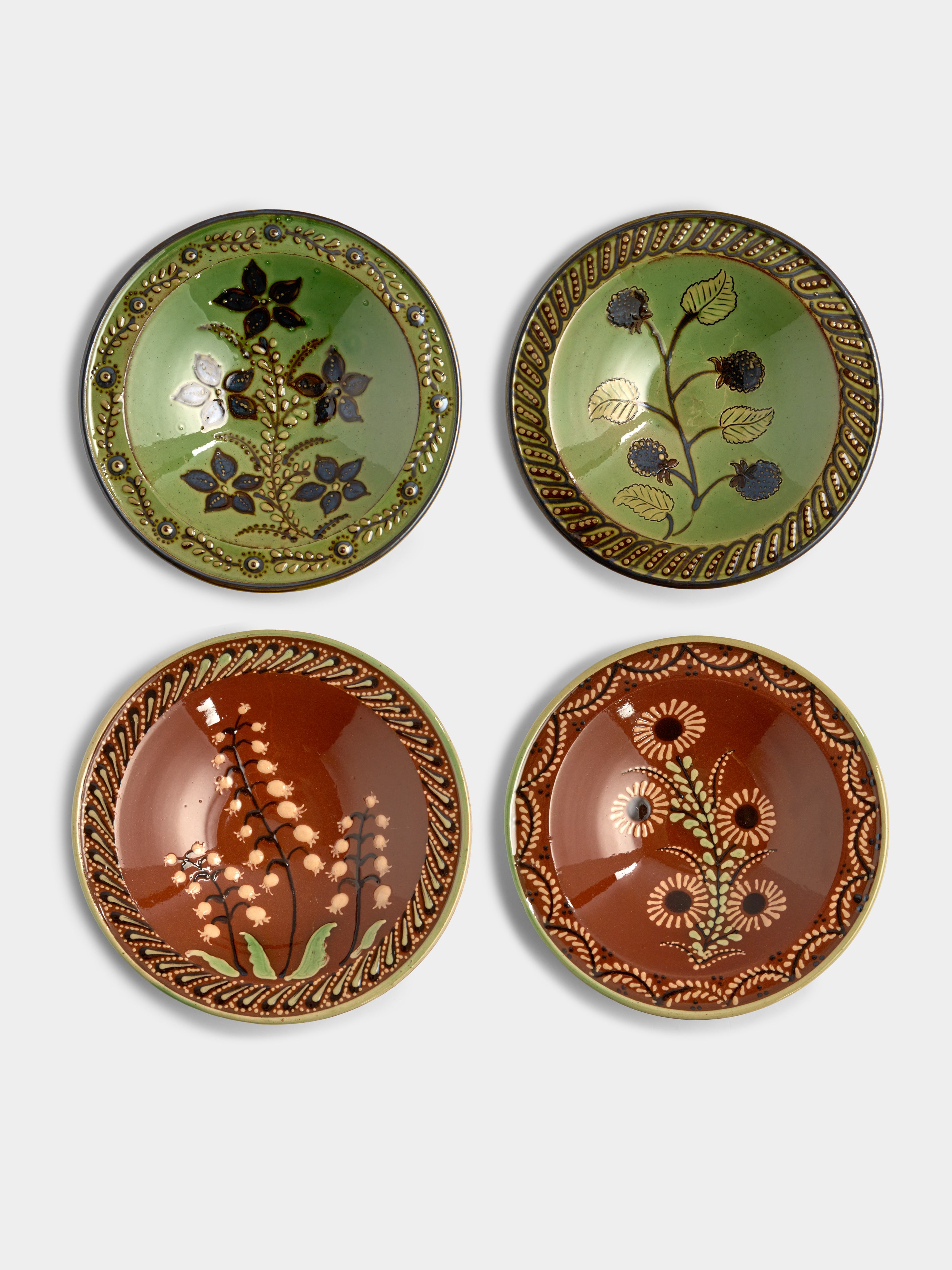 Poterie d’Évires Flowers Hand-Painted Ceramic Breakfast Bowls (Set of 4)