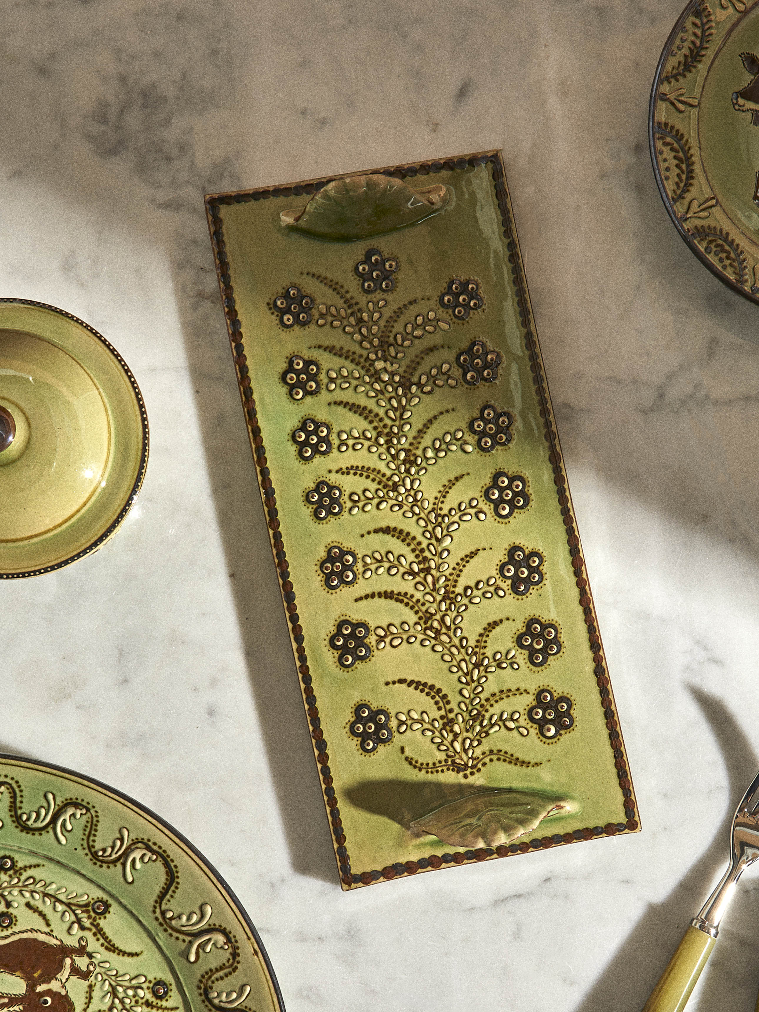 Jean-Christophe Hermann grew up near Lake Annecy in France, and recalls visiting an old pottery at just five years old that inspired him to pursue ceramics – a moment that led to the opening of Poterie d’Évires in 1971. Influenced by the landscape of their Haute-Savoie home, the Hermann family – Jean-Christophe and David, the father and son duo – hand-paint local delights onto their light, earthy and decorative clay; alpine flowers like tiny crocuses and soldanellas often feature, as well as native creatures such as Chamois and Ibex. ABASK made a special road-trip to the French Alps to hand-pick a curation from their exquisite collection. In 1981, after exploring his region’s brocante for many years, Jean-Christophe opened a museum dedicated to the pottery and folk art of Savoie. It’s the largest and most comprehensive collection in the world and displays pieces that date as far back as the 12th century.