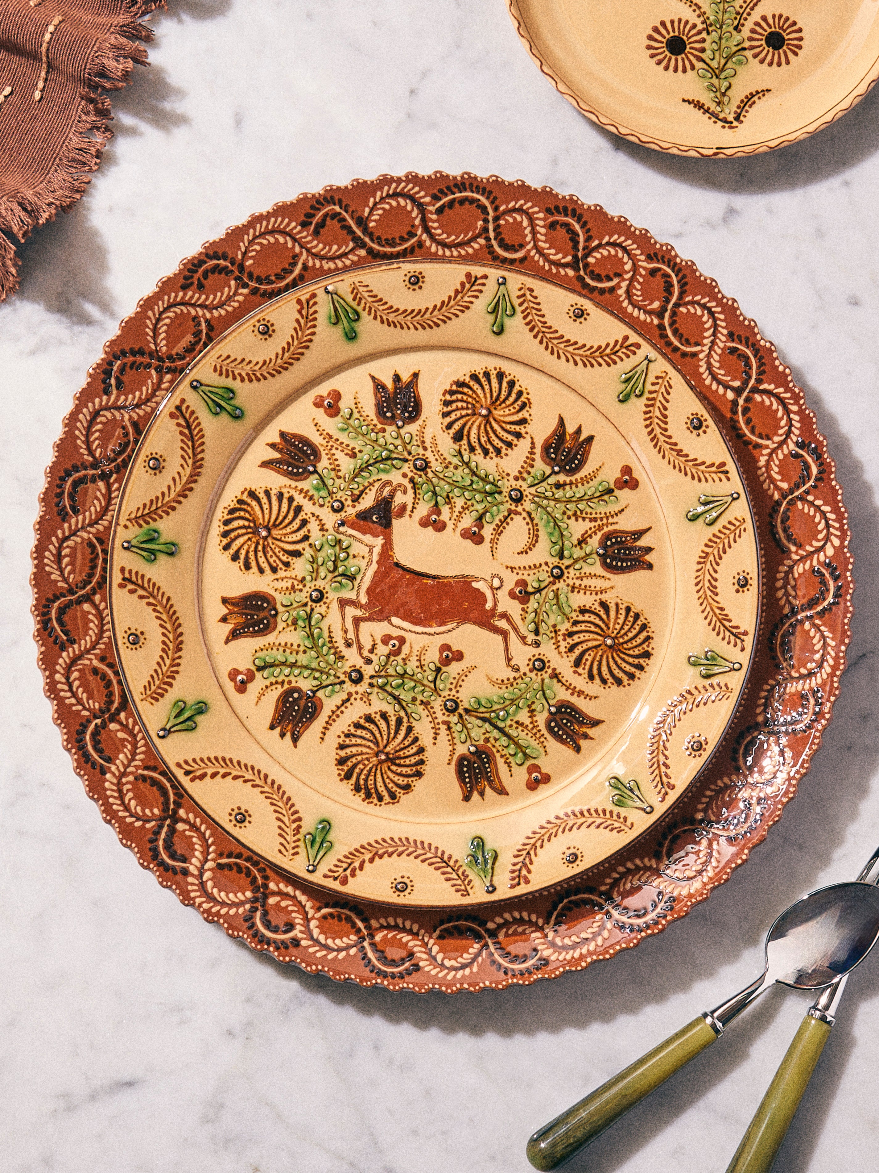 Jean-Christophe Hermann grew up near Lake Annecy in France, and recalls visiting an old pottery at just five years old that inspired him to pursue ceramics – a moment that led to the opening of Poterie d’Évires in 1971. Influenced by the landscape of their Haute-Savoie home, the Hermann family – Jean-Christophe and David, the father and son duo – hand-paint local delights onto their light, earthy and decorative clay; alpine flowers like tiny crocuses and soldanellas often feature, as well as native creatures such as Chamois and Ibex. ABASK made a special road-trip to the French Alps to hand-pick a curation from their exquisite collection. In 1981, after exploring his region’s brocante for many years, Jean-Christophe opened a museum dedicated to the pottery and folk art of Savoie. It’s the largest and most comprehensive collection in the world and displays pieces that date as far back as the 12th century.