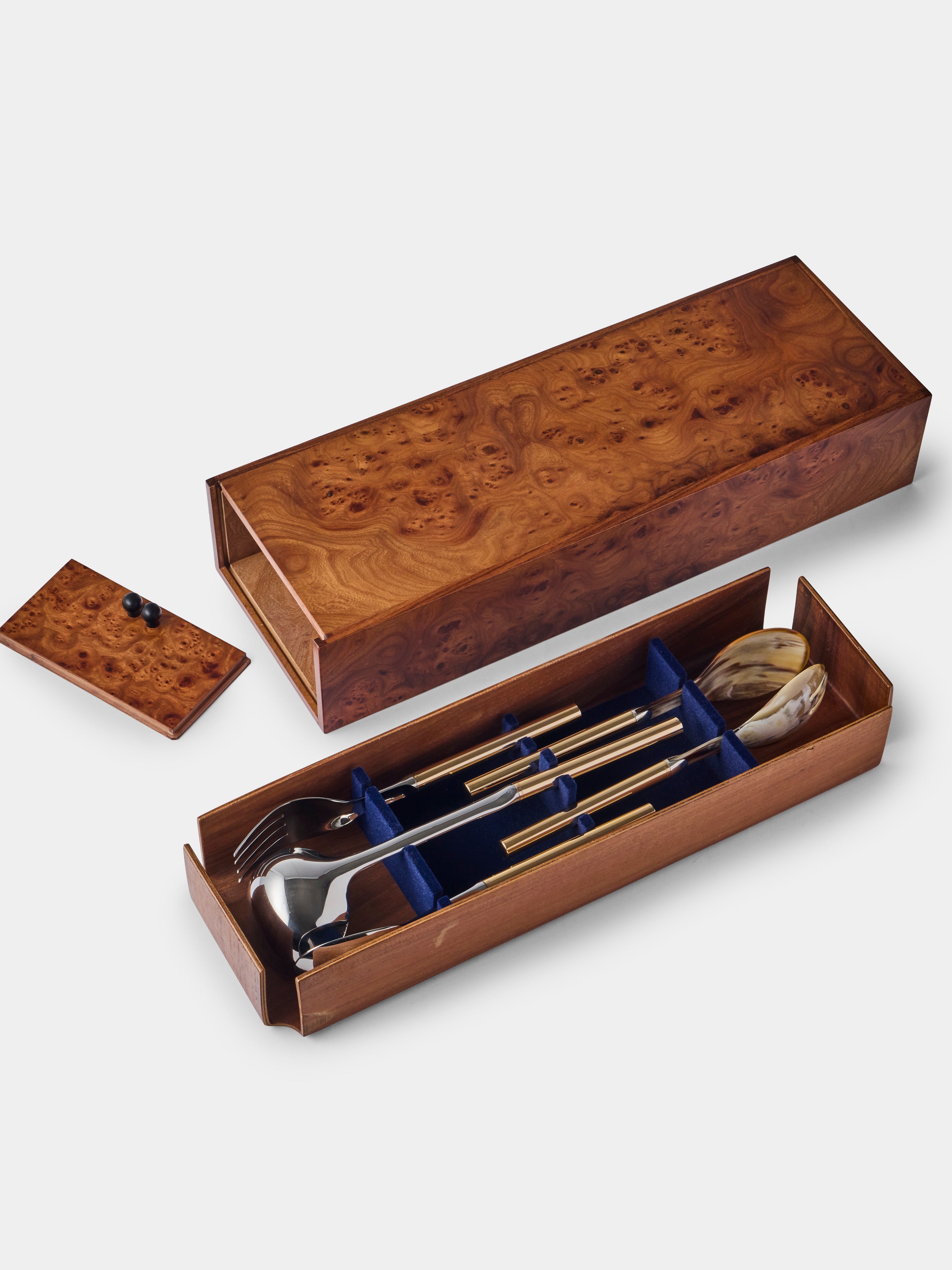 San Lorenzo 1979 Afra and Tobia Scarpa Sterling Silver and Gold Serving Cutlery in Wooden Box (Set of 5)