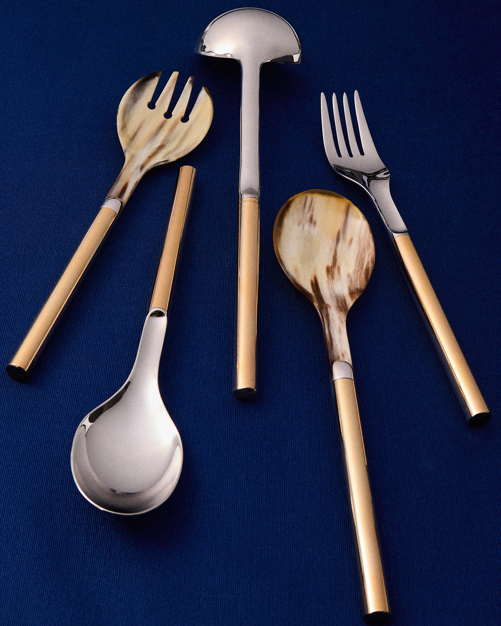 - Set includes: Salad cutlery 6.5cm (w) x 2.5cm (l) x 27cm (d)// Serving spoon 5.5cm (w) x 2.5cm (l) x 26.5cm (d)// Serving fork 4cm (w) x 2.5cm (l) x 26.5cm (d)// Soup Ladle 8.5cm (w) x 6cm (l) x 32cm (d)// Box 18cm (w) x 9.5cm (l) x 53cm (d)