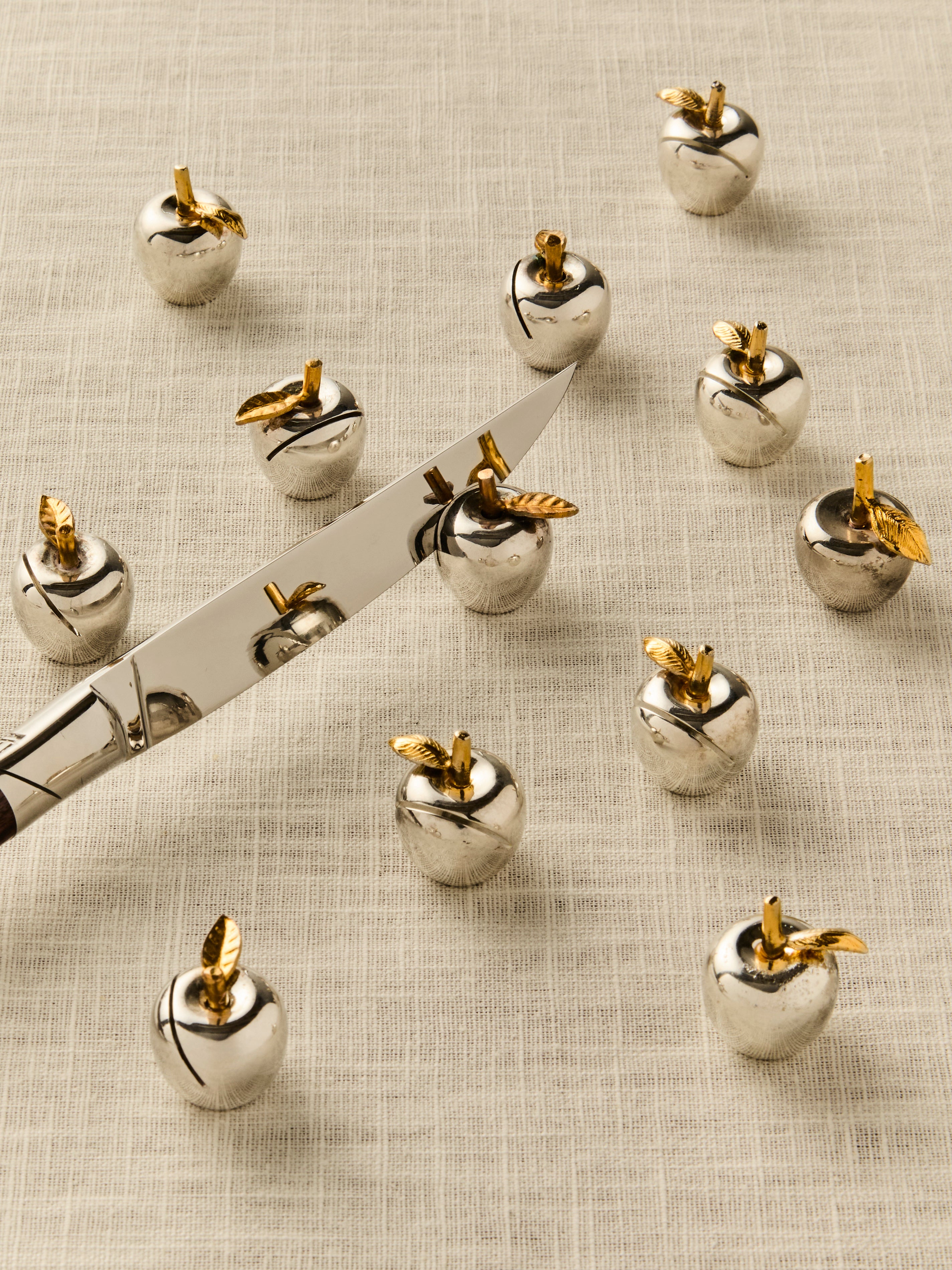 Antique and Vintage Mid-Century Apples Silver-Plated Knife Rests (Set of 12)