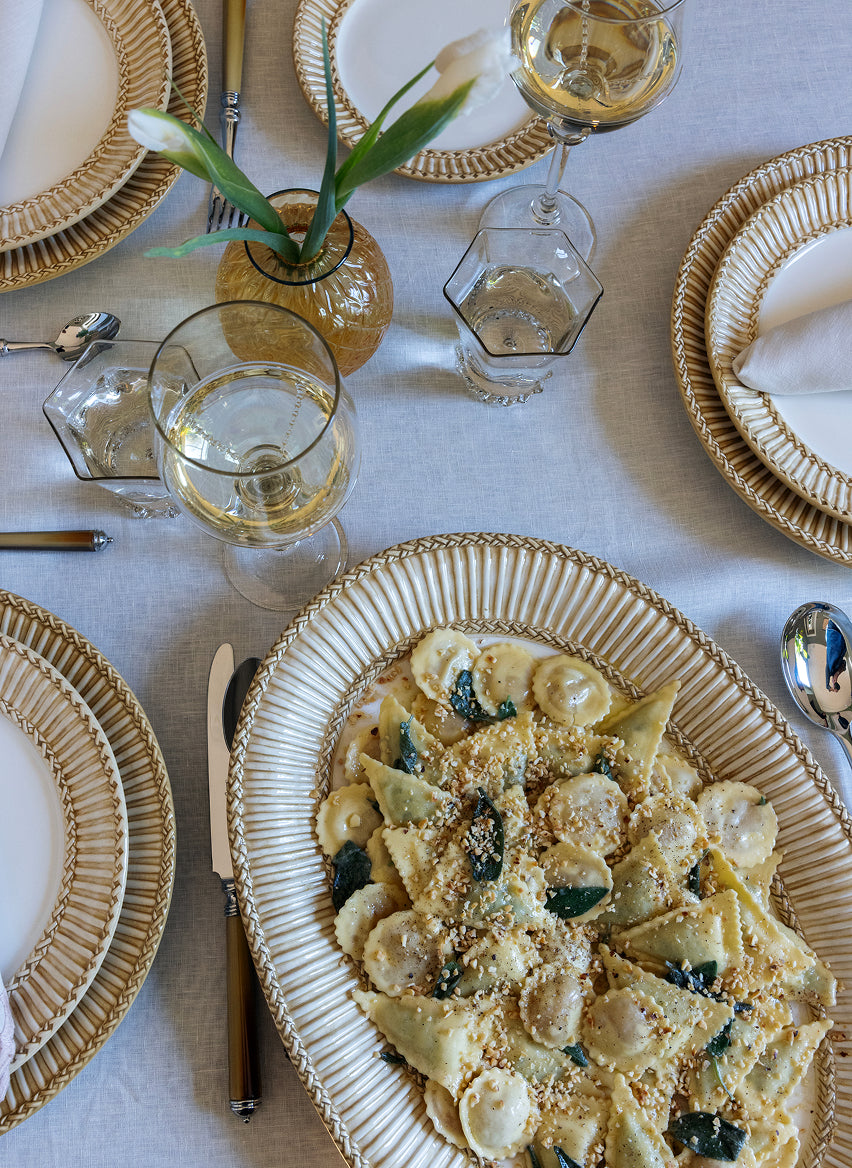 “I find the plate to be very important, like an accessory that will enhance your meal, so I plan them together as a theme. I have an addiction to plates and I hide them everywhere. I serve a lot with individual ramekins. I love making these little lasagnas in beautiful ramekins so that everybody has their own. This idea of individuality makes a meal feel instantly special. There’s something magic about it.”